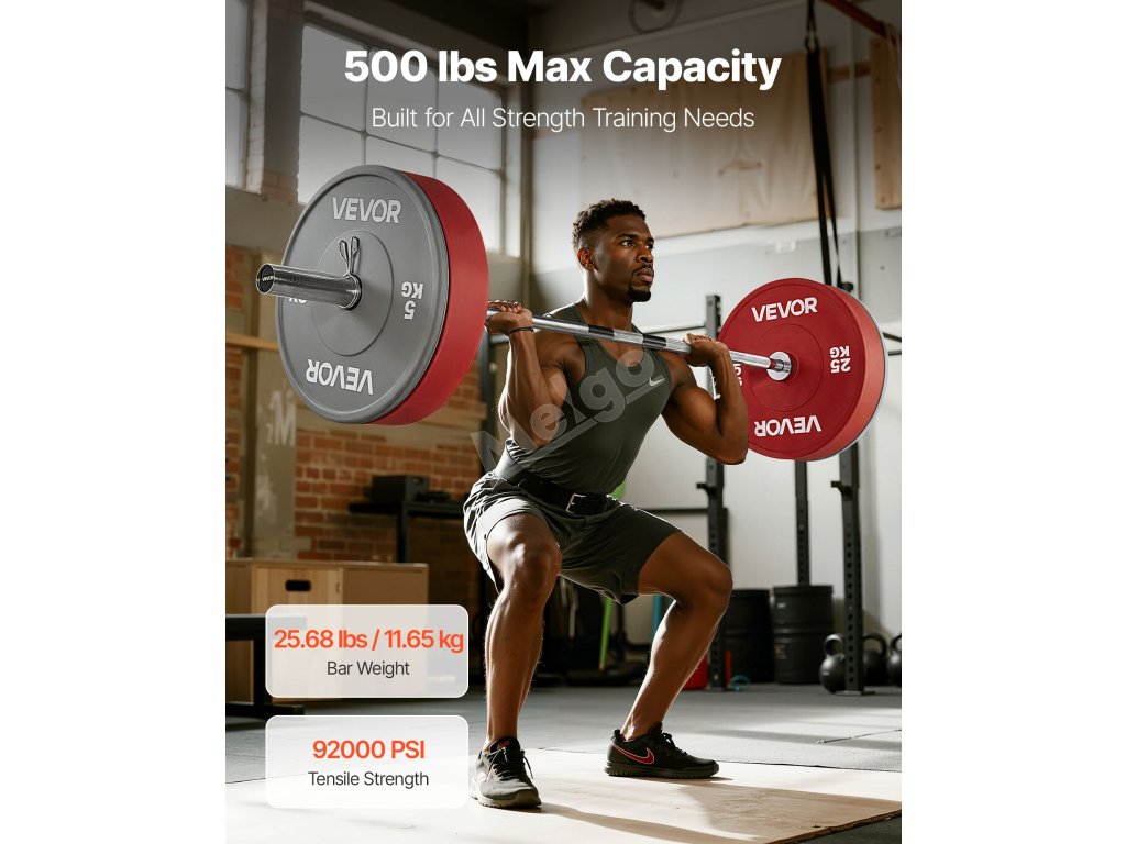 Tato lavicová tyč unese až 500 liber/226,8 kg s pevností v tahu 92 000 PSI. Díky mosazným pouzdrům, jehlovým ložiskům a diamantovému drážkování poskytuje stabilitu, bezpečný úchop a pohodlnou manipulaci pro efektivní silový trénink.