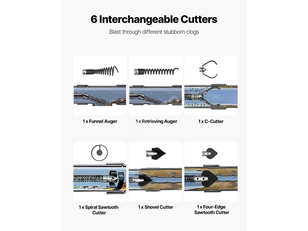 Čistič kanalizace 30m×19mm, 6 fréz, automatické podávání, 100–200mm