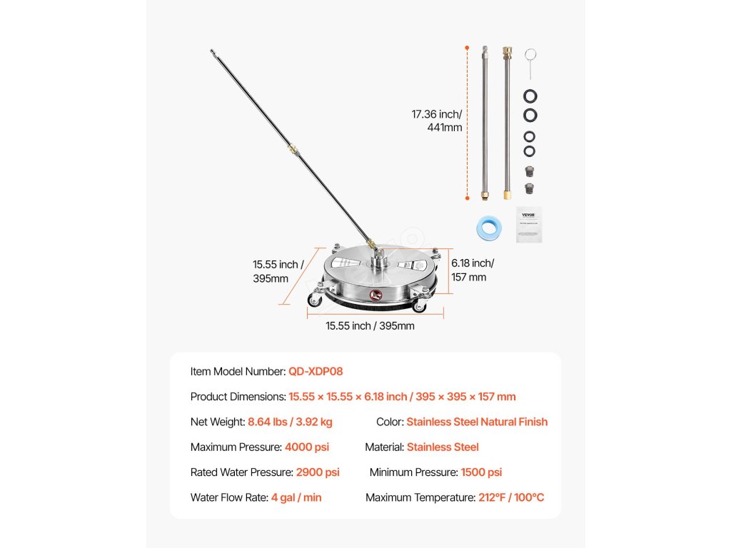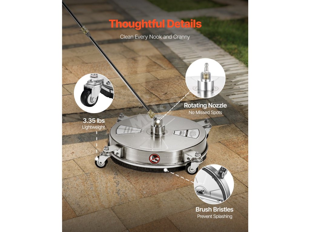 Čistič povrchů 15" nerez, 4 kolečka, 4000 psi, 1/4", 2 trysky