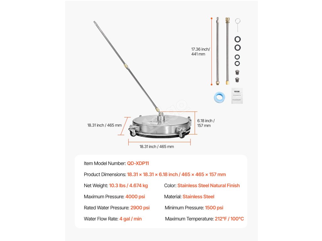 Čistič povrchů 18" nerezový, 4 kola, 4000 psi, 1/4 konektor