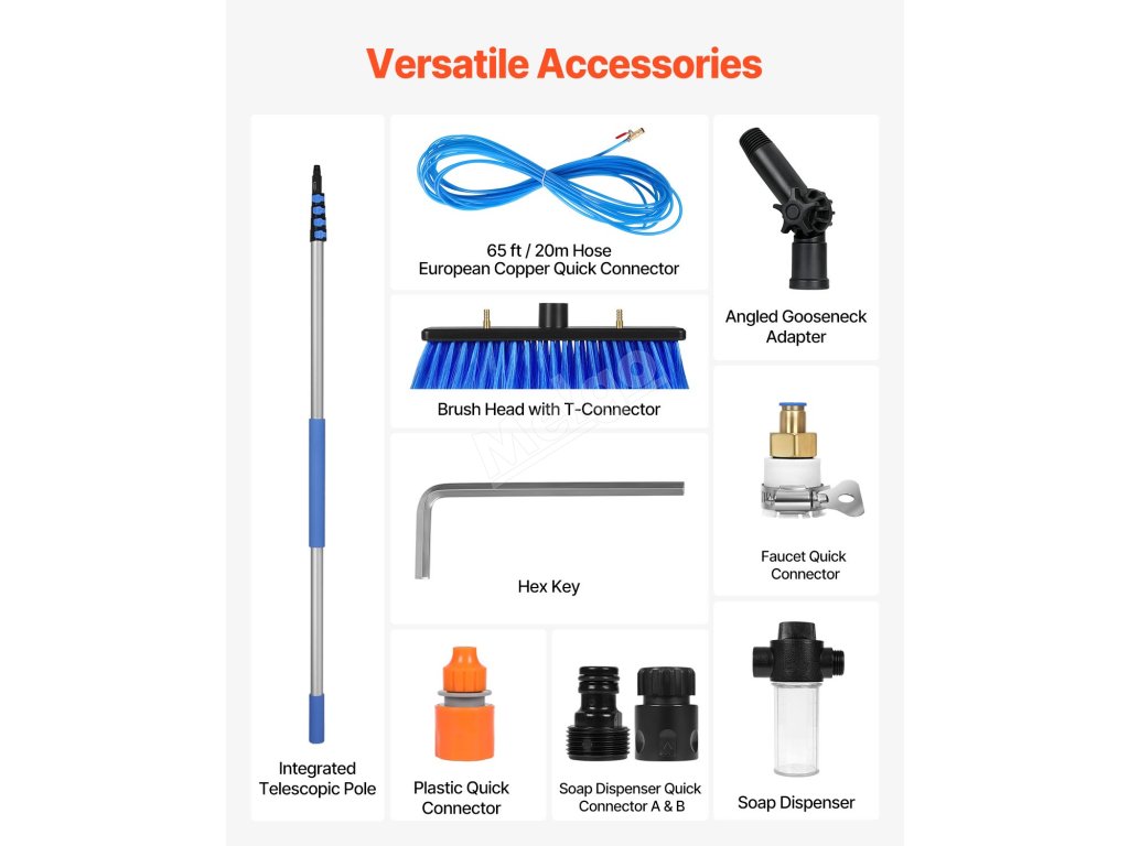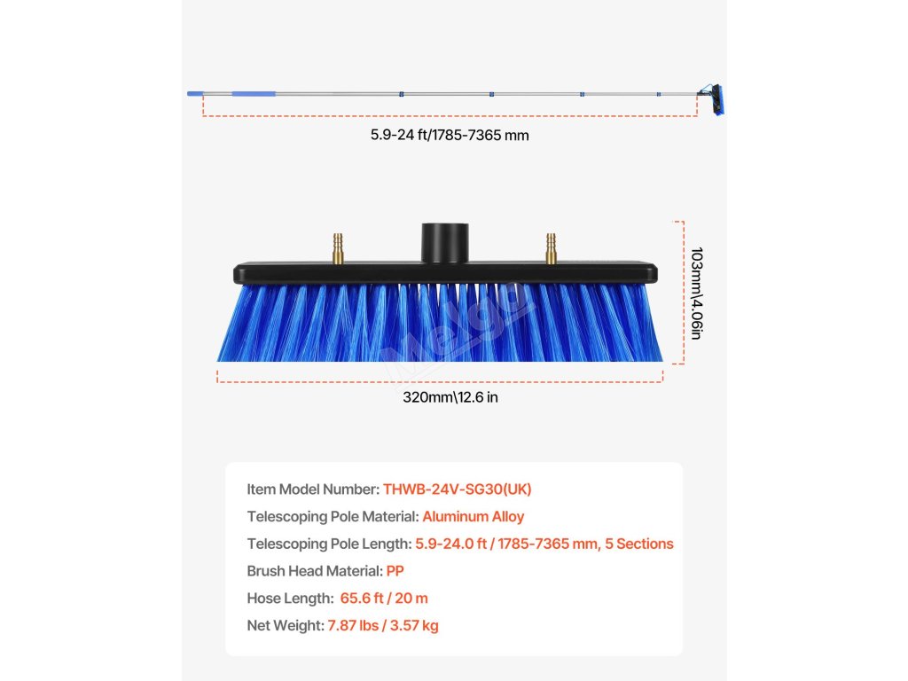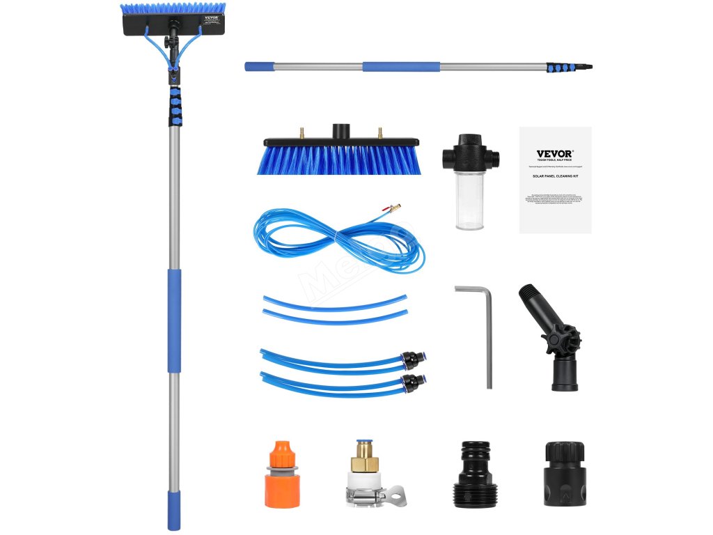 Rozlučte se s úklidem ve vysokých nadmořských výškách! Tato sada vodních tyčí je vybavena nastavitelnou tyčí, která se vysouvá až do 7,3 m, otočnou hlavou o 180° a 2 vodními tryskami pro důkladné čištění. Součástí jsou rychlospojky a univerzální hadice o délce 20 m, která snadno zvládne různé úklidové úkoly.