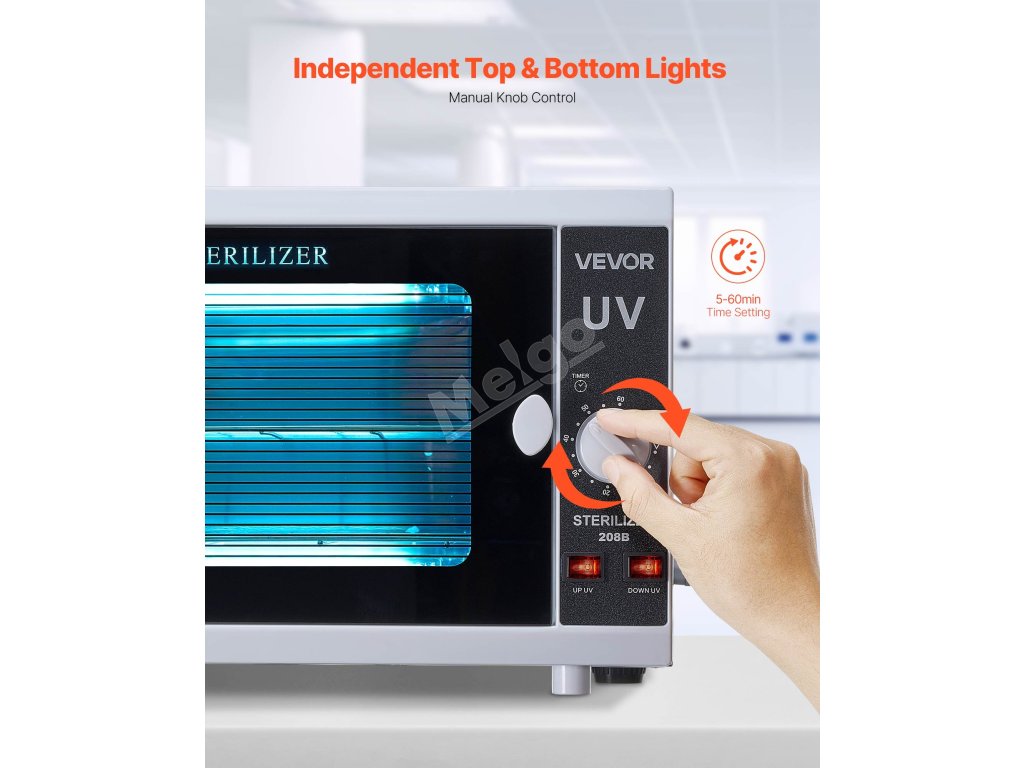 Skrinka na čistenie nástrojov v salóne jasne zobrazuje čas dezinfekcie, čo uľahčuje sledovanie priebehu. Čas je nastaviteľný tak, aby vyhovoval rôznym potrebám.
