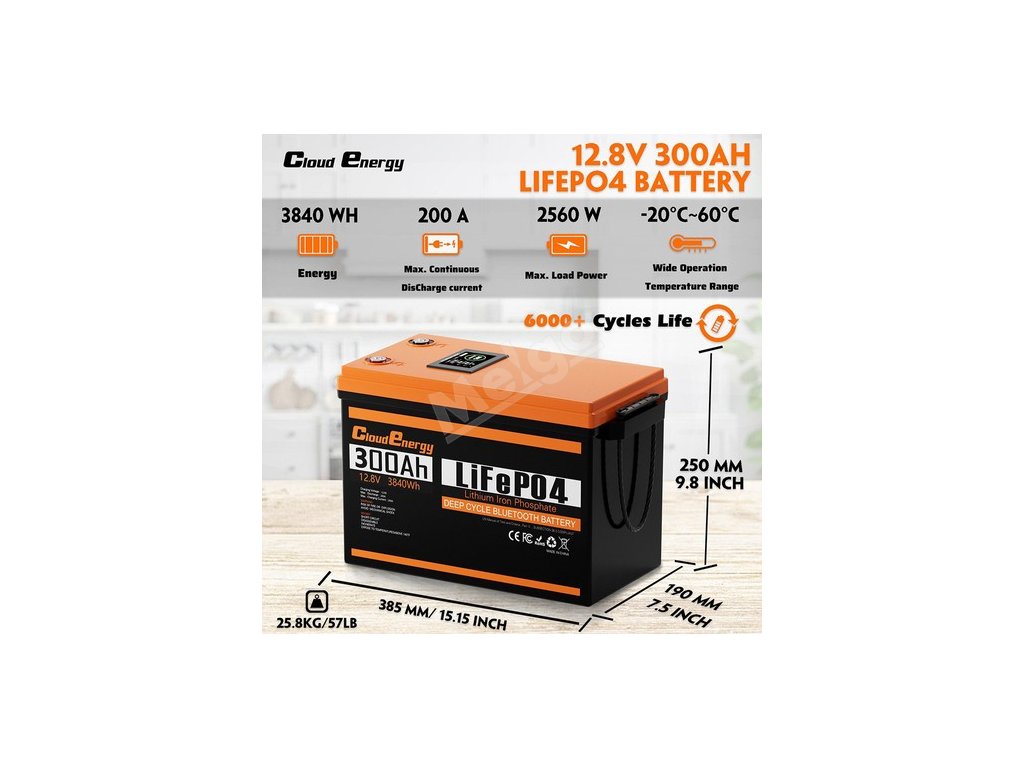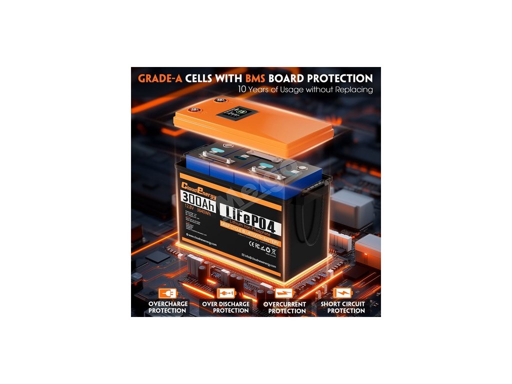 Cloudenergy 12V 300Ah LiFePO4 Battery Pack