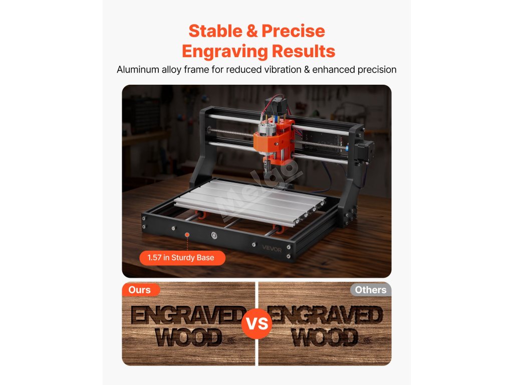 Naše CNC frézka je vybavena rámem z hliníkové slitiny, který účinně snižuje vibrace a zajišťuje přesné gravírování.