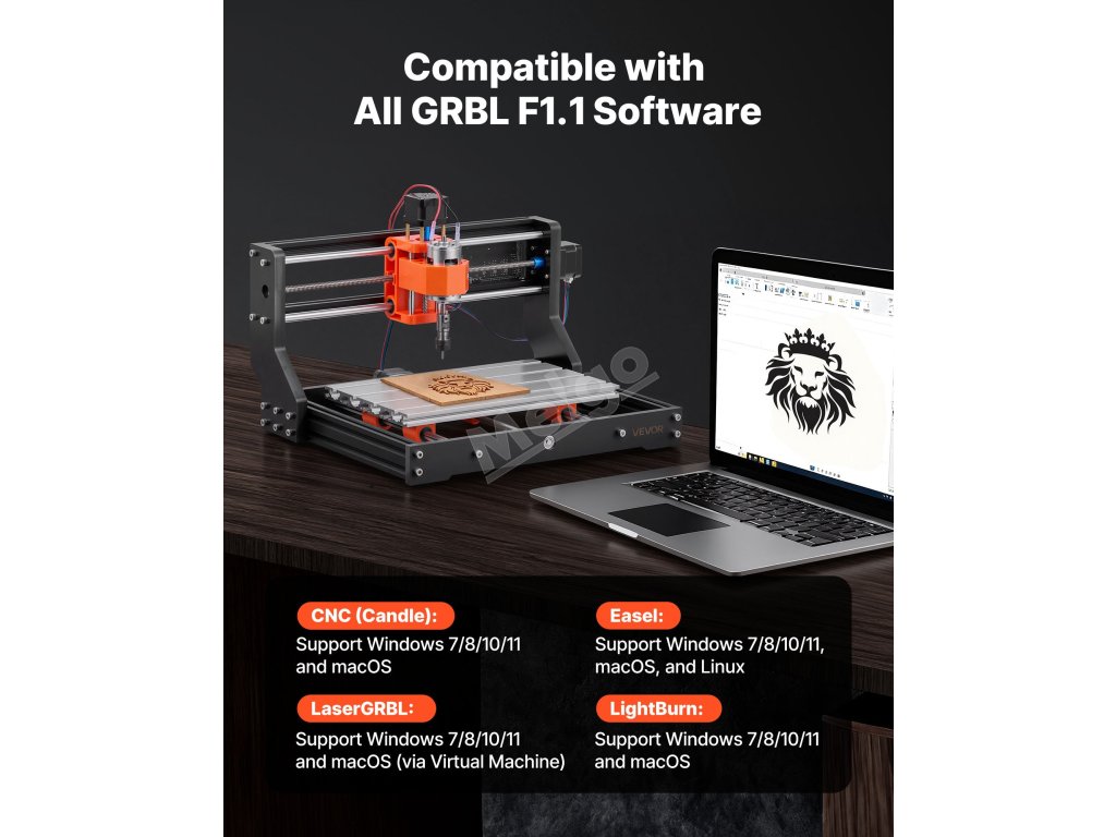 Podporuje osu Y a rozšíření laserového modulu, což umožňuje vytvářet složité projekty s 60W vřetenem. Je kompatibilní se všemi softwary podporujícími firmware GRBL f1.1 a je schopna pracovat offline, takže řezání, vrtání a gravírování materiálů, jako je dřevo, kůže, vinyl a měkké kovy, je hračkou.