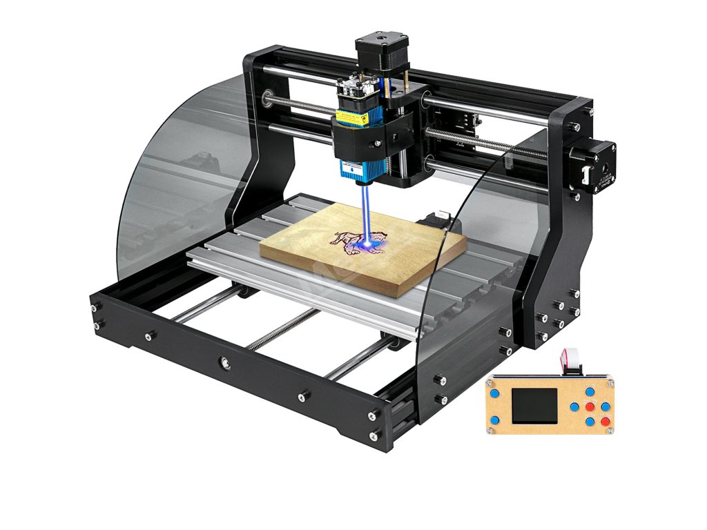 Cnc gravírovací stroj 300×180×45 mm, 3 osy, 15 W grbl, offline ovladač