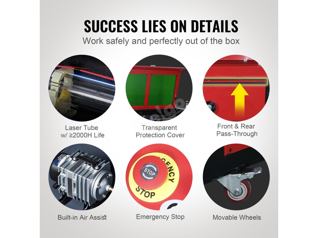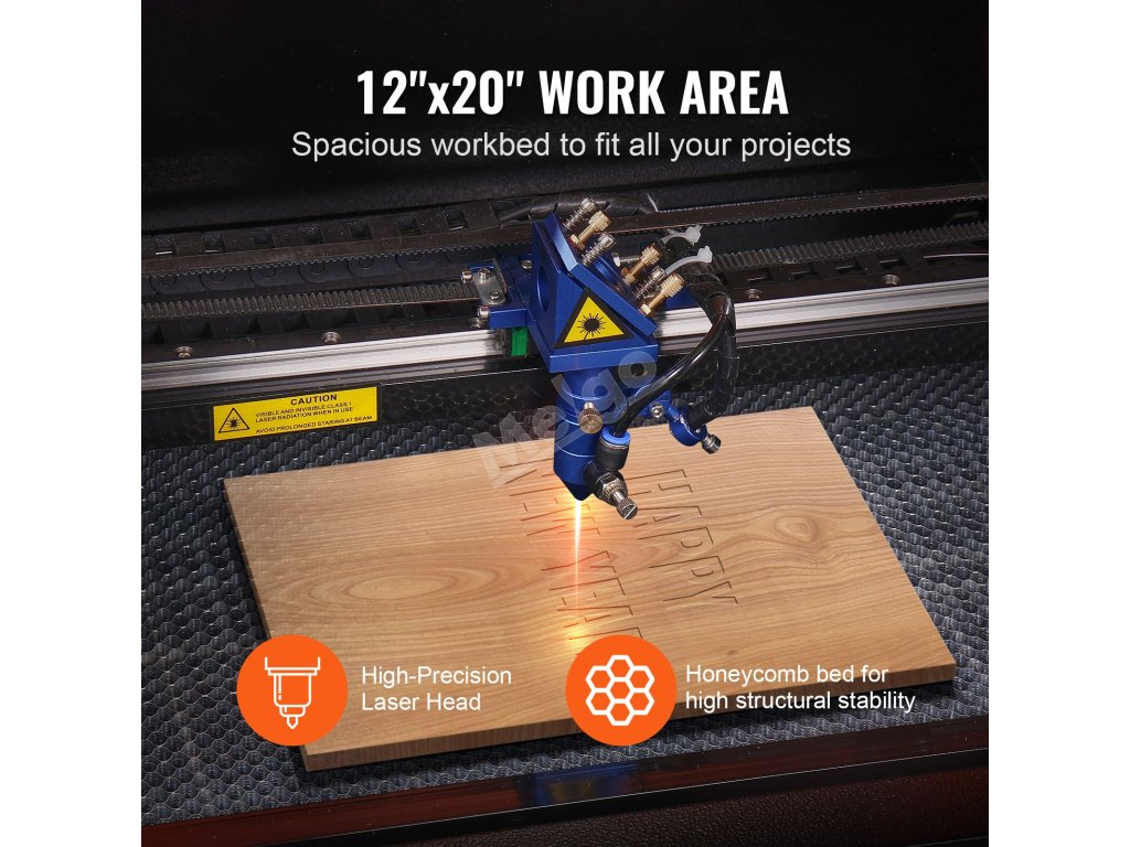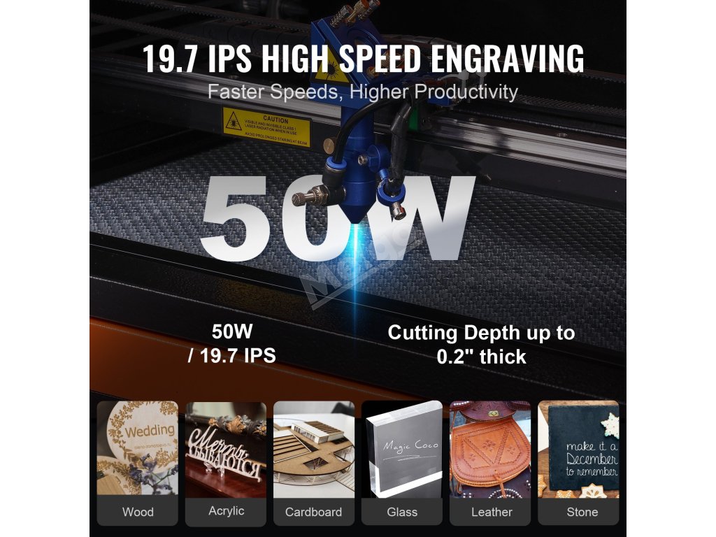 CO2 gravírovací laser 50 W, 30×51 cm, 500 mm/s, 2-way air assist