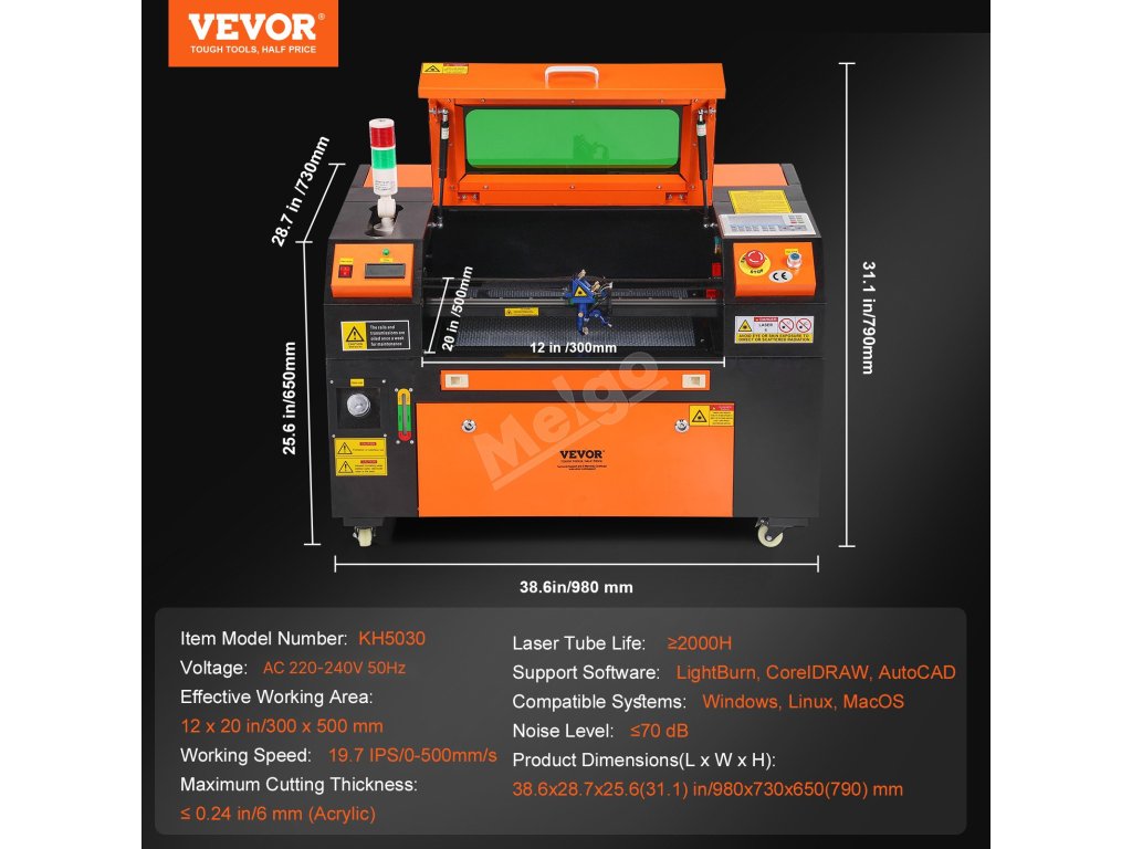 S naším laserovým gravírovacím strojem a řezačkou CO₂ uvedete své kreativní vize v život! Pyšní se rychlostí gravírování 19,7 ips a gravírovací plochou 12 x 20 in/300 x 500 mm, přesně gravíruje více než 1 000 různých materiálů a řeže tloušťky až 0,24 in/6 mm. Zlepšete svůj zážitek z tvorby ještě dnes!