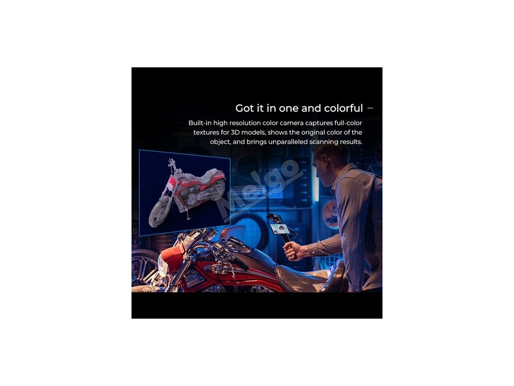 | Specifikace | Přesnost: 0,1 mm Rozlišení/vzdálenost bodů: rozsah snímání: 0,16 mm Rozsah jednoho skenování: 560*820mm@700mm Minimální skenování: 50*50*50 mm Pracovní vzdálenost: 150 - 700 mm Snímková frekvence/rychlost snímání: až 30 snímků za sekundu Venkovní skenování: Podporuje skenování za jasného slunečního světla Barevná textura: Podporuje režim připojení: NIR Režim sledování: OBJ/STL/PLY Kompatibilní systém: Android / Win 10/11 (64-bit) / macOS | .