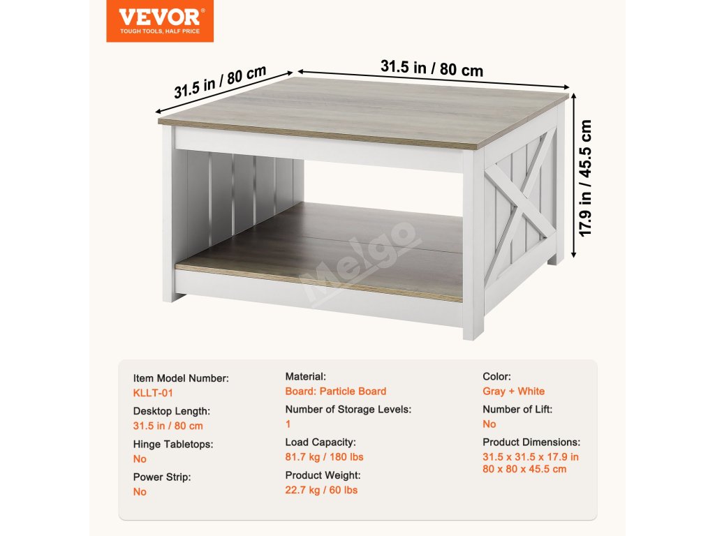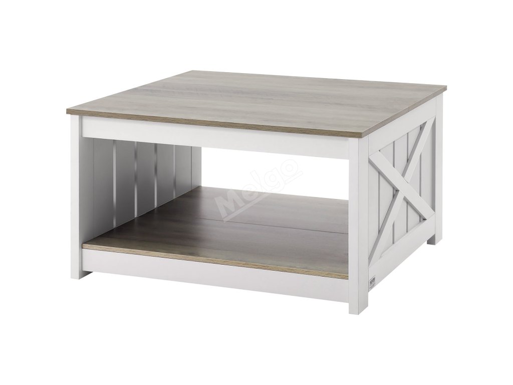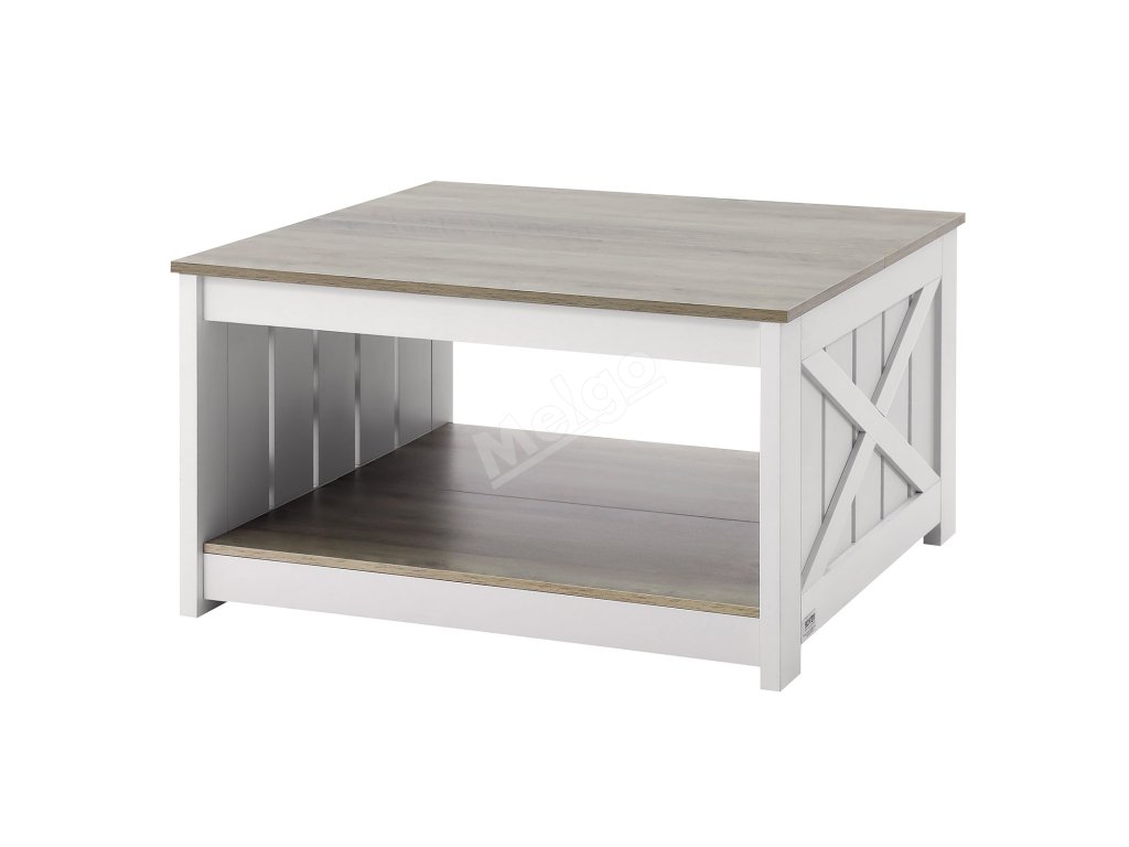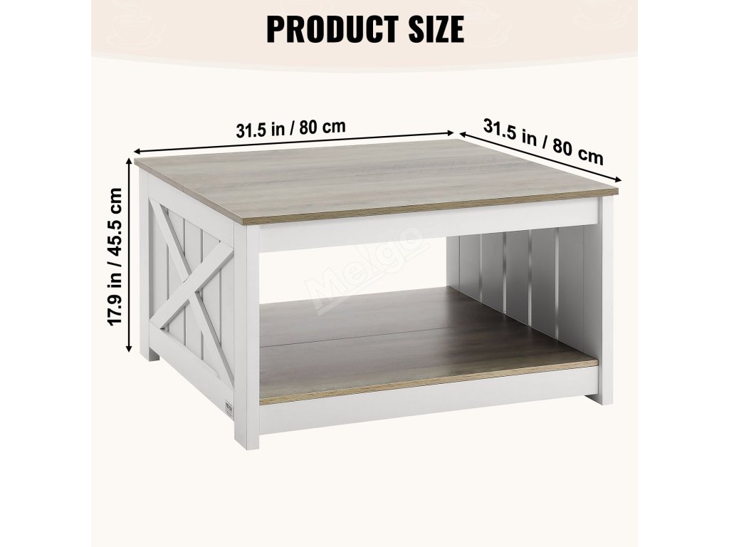 Čtvercový konferenční stolek 31.5"×31.5" otevřené úložiště, šedobílý