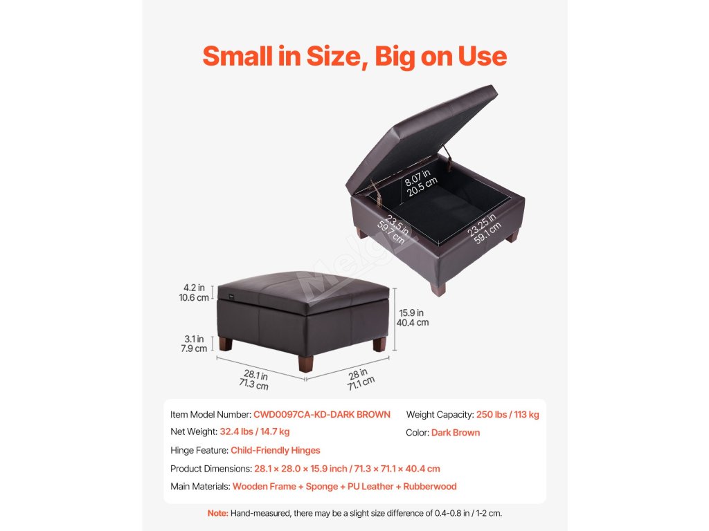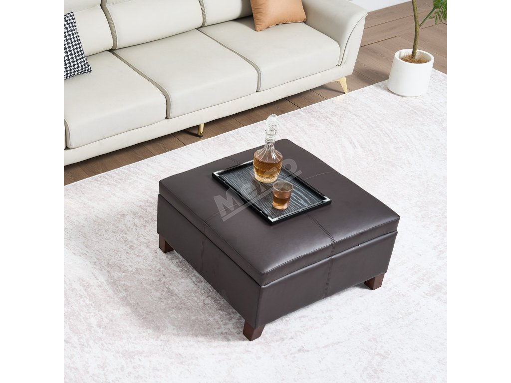 Tento univerzální kožený otoman s úložným prostorem v sobě spojuje pořádek a eleganci. Díky skrytému úložnému prostoru uvnitř a pohodlnému čalouněnému sedáku na horní straně se skvěle hodí jako otoman, úložná komoda nebo stylový akcent. Skvěle se hodí do malých prostor a moderních domácností.