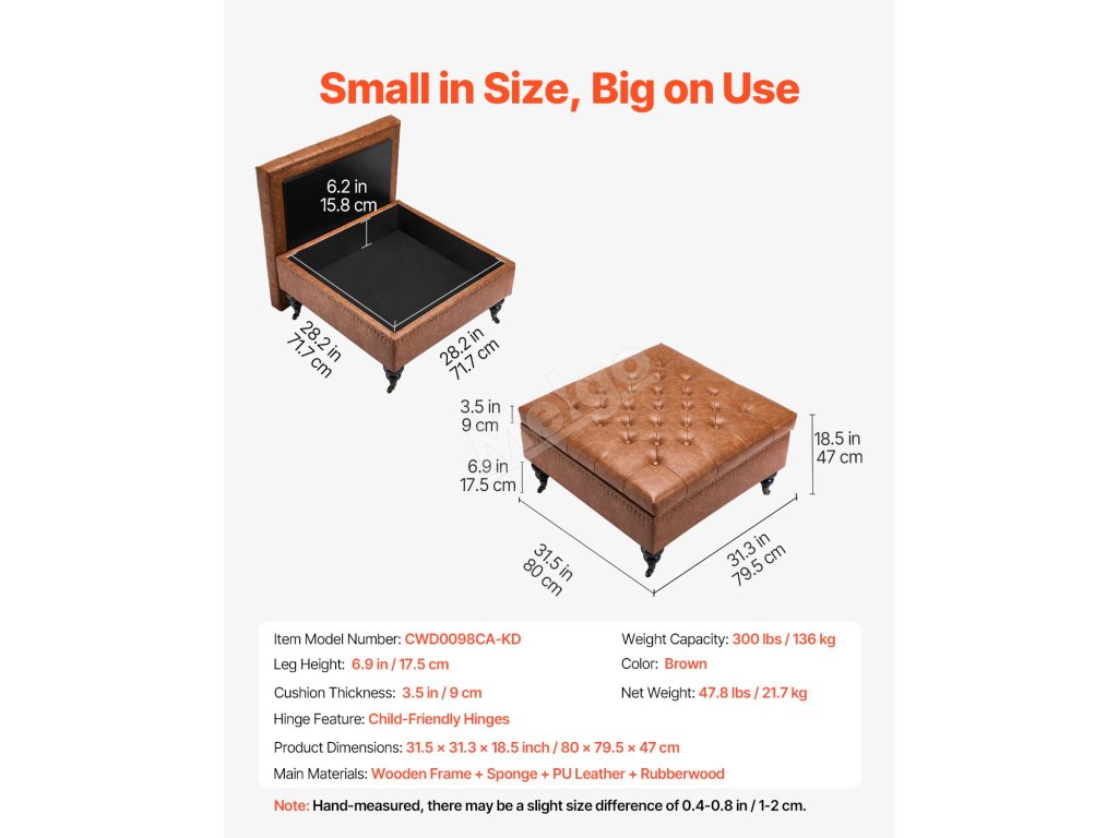 Tento univerzální kožený otoman s úložným prostorem v sobě spojuje pořádek a eleganci. Díky skrytému úložnému prostoru uvnitř a pohodlnému čalouněnému sedáku na horní straně se skvěle hodí jako otoman, úložná komoda nebo stylový akcent. Skvěle se hodí do malých prostor a moderních domácností.