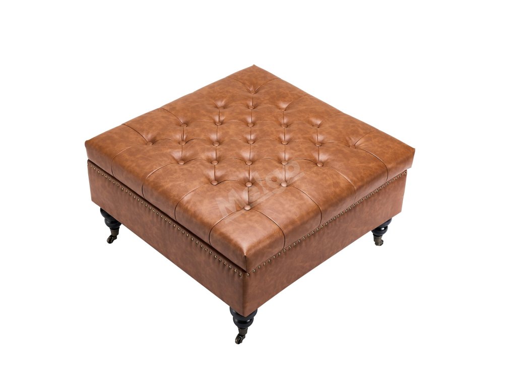Čtvercový taburet 80 cm s úložným prostorem, čalouněný z pu, kolečka