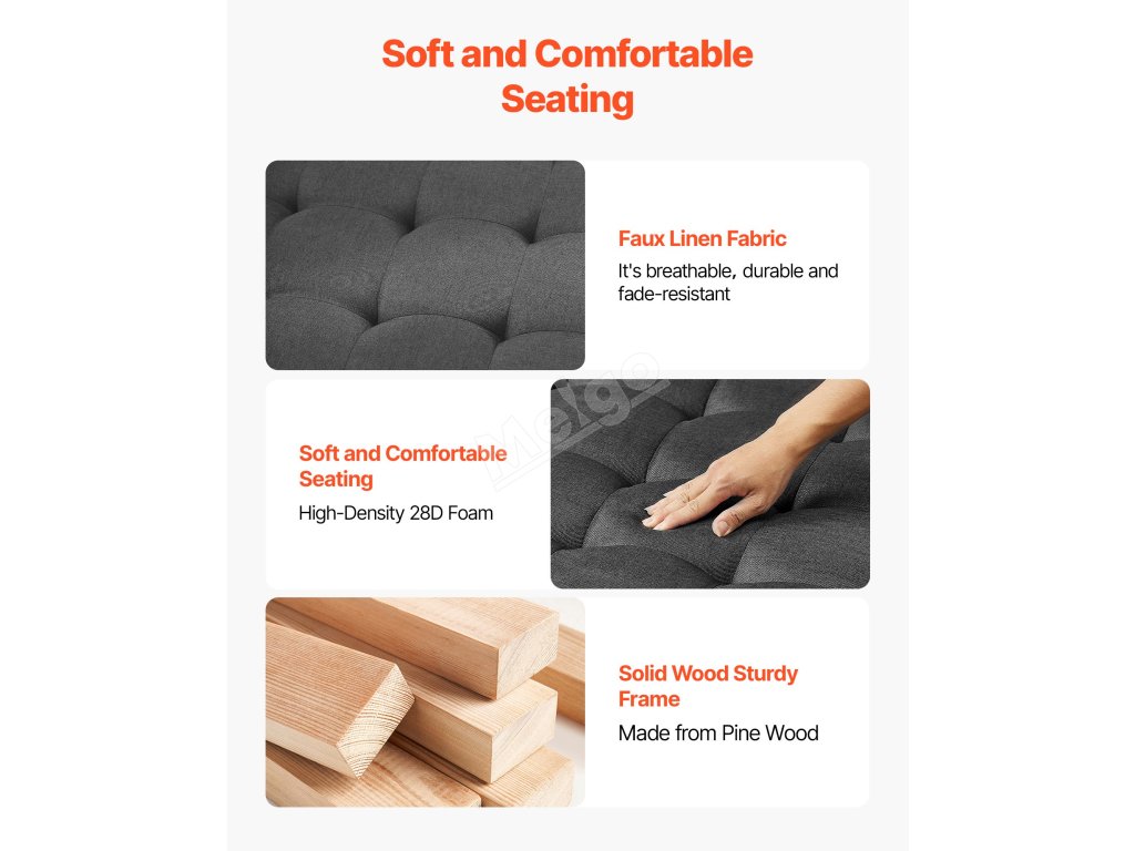 Čalouněný konferenční stolek je vyroben z 240 g silné lněné tkaniny, která je odolná proti roztržení, opotřebení a plísním. Je prodyšná, chladivá a odolná a poskytuje příjemný pocit na kůži i při dlouhodobém používání.