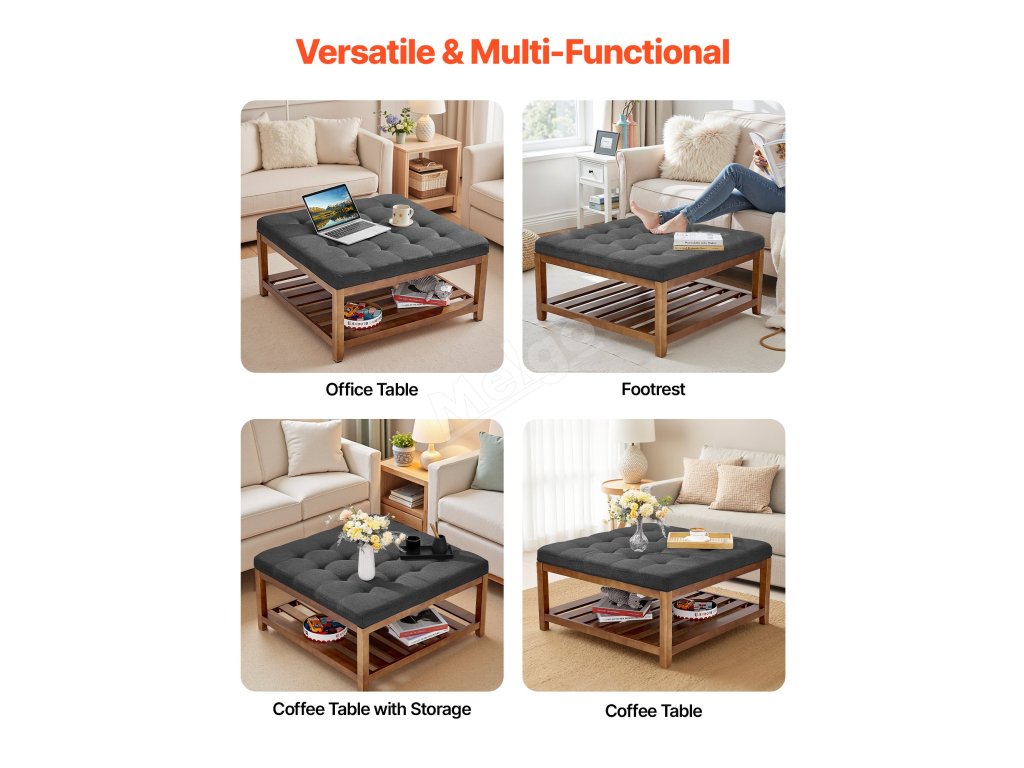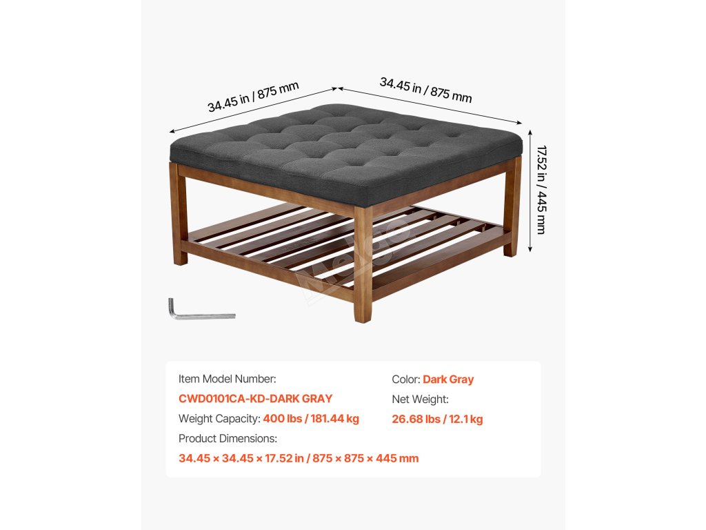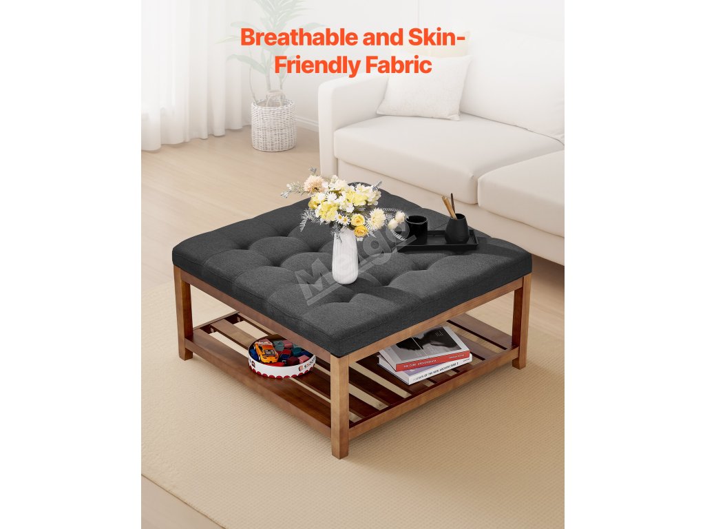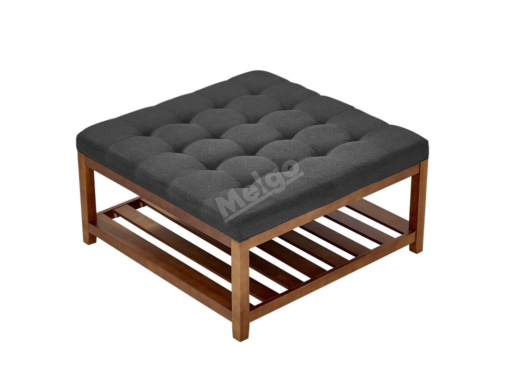 Čtvercový tuftovaný taburet s policí 34.5 inch, 400 lbs, tmavě šedý