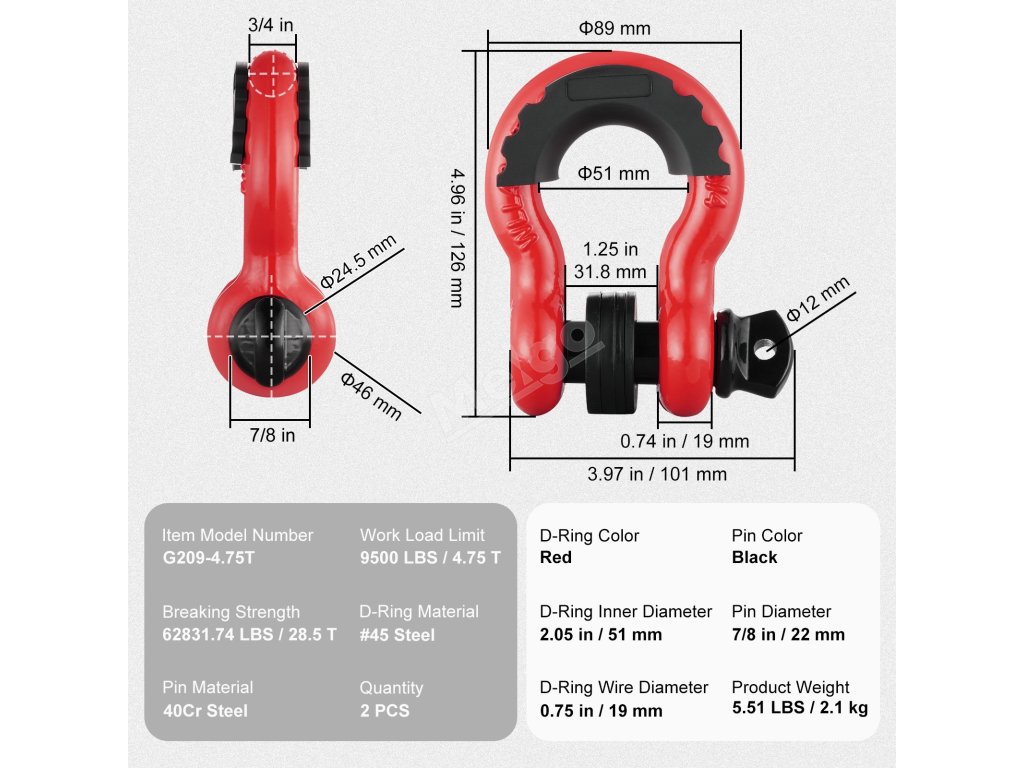D-šekl 2 ks 19 mm, šroubový čep 22.2 mm, zlomová pevnost 28.5 tun