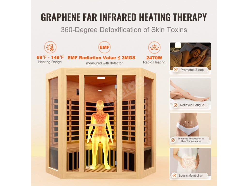 Vysoce výkonný rychlý ohřev v kombinaci s grafenovými topnými panely nabízí vynikající elektrickou a tepelnou vodivost. Díky tomu teplo proniká hluboko do těla a pomáhá zmírnit nespavost, udržet mladistvou pleť, uvolnit svaly, napomáhá hubnutí a detoxikuje tím, že odstraňuje chlad.