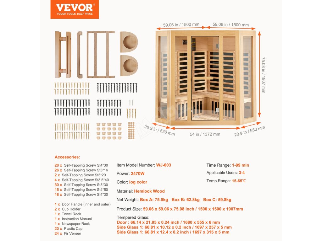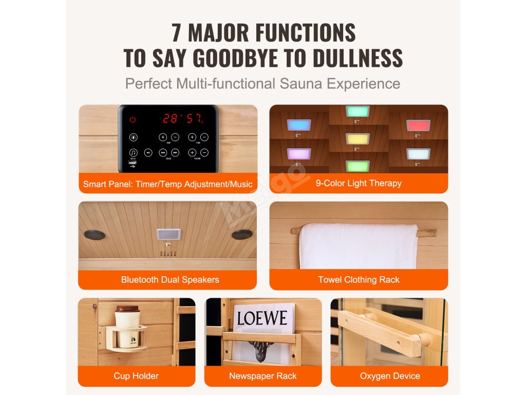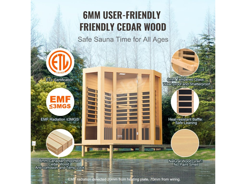 Tato saunová místnost je díky svému vynikajícímu designu vhodná na různá místa. Ať už v obývacím pokoji, koupelně, ložnici, sklepě nebo tělocvičně, můžete si kdykoli vychutnat relaxaci a pohodlí sauny.