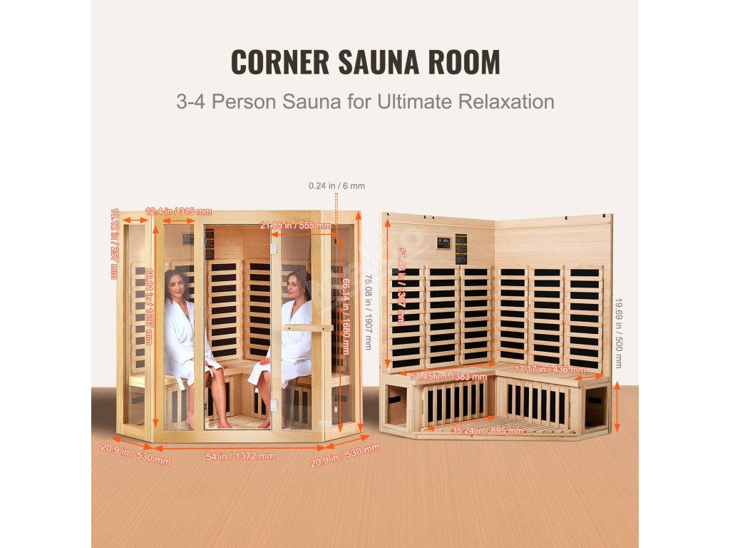 Dalekoinfračervená vnitřní sauna 3–4 osoby, hemlockové dřevo, 2470W