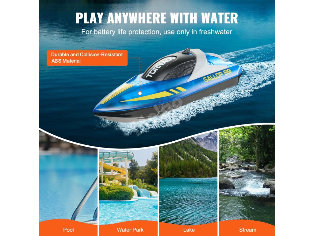 Tento rychlý RC člun je vyroben z odolného ABS a je plně vodotěsný, takže zvládne náročné podmínky a odolá nárazům. Je spolehlivý pro dobrodružství na zahradě i v přírodě.