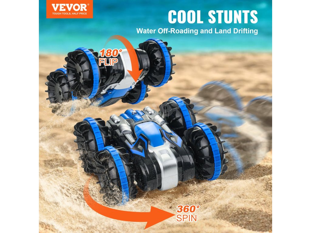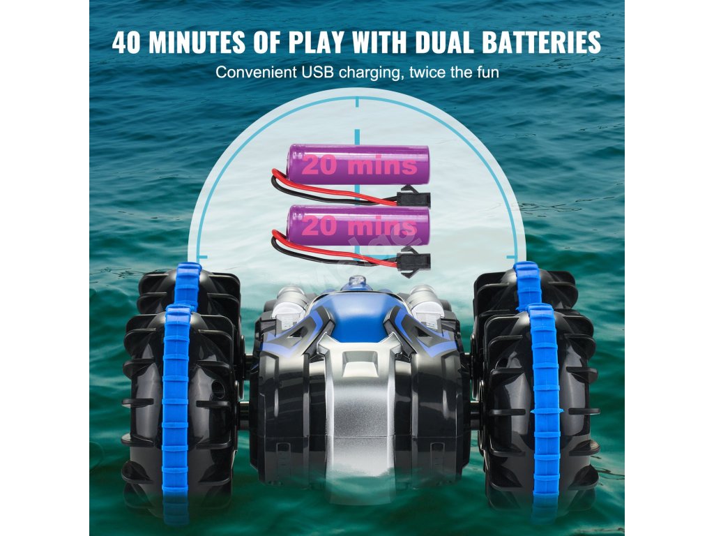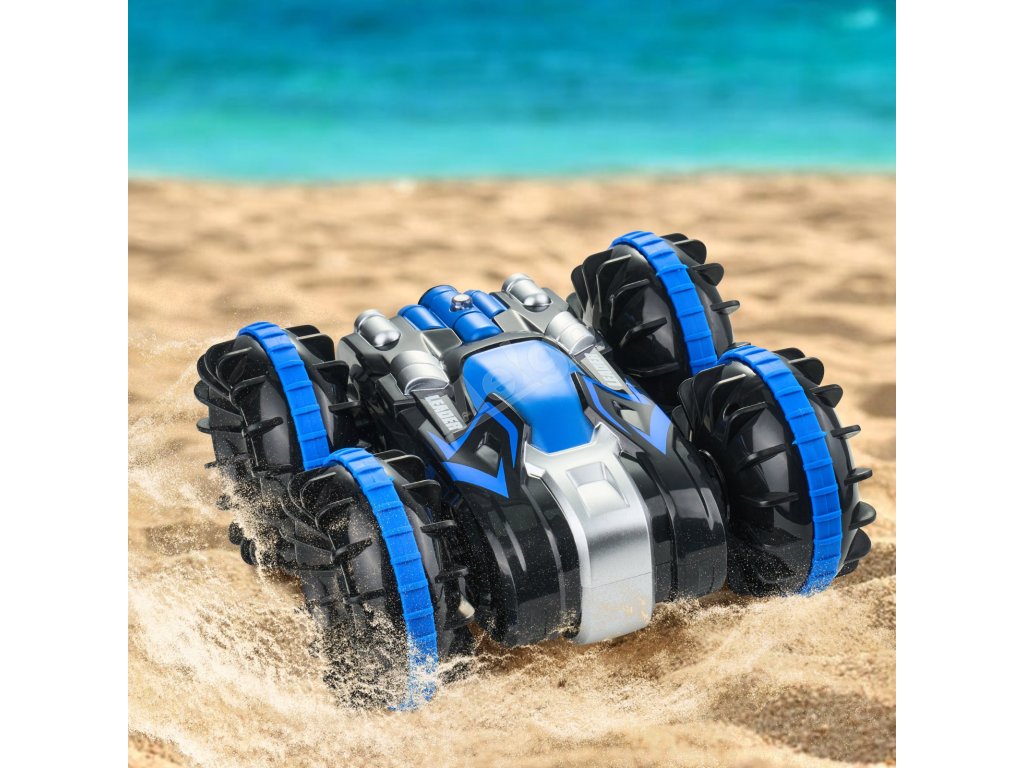 Zažijte zábavná salta, otočky a nejrůznější triky na vodě i na souši! Tento obojživelný RC člun je nabitý vzrušujícími funkcemi, díky kterým bude každý okamžik plný akce.