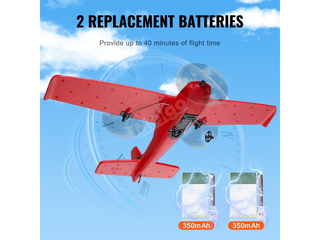 Dálkově ovládané letadlo 2.4GHZ 2 kanály 6-osý gyroskop 2× baterie