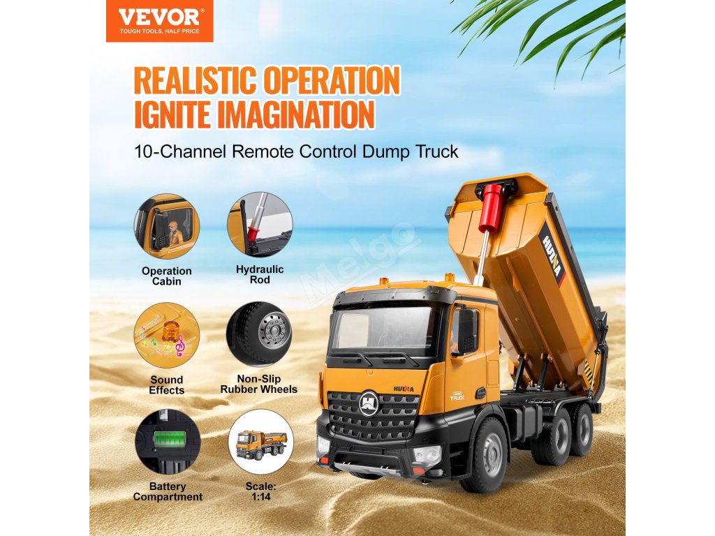 Zažijte vzrušení z reálného provozu s tímto RC sklápěčem! Díky funkcím, které se ovládají jedním dotykem, jako je lože nákladního vozu, prostor pro baterii a simulovaná hydraulická tyč, působí jako skutečný. Zvukové efekty a protiskluzová gumová kola ještě umocňují zábavu!