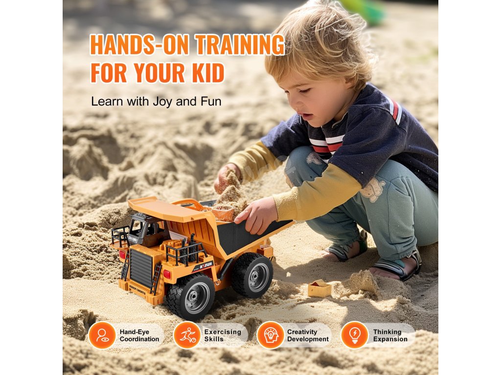 S touto RC hračkou - sklápěčkou vyrobenou z vysoce kvalitních materiálů se děti mohou ponořit do simulace staveniště. Zvukové a světelné efekty vytvářejí realistický zážitek, ukazují, co dělá skutečný sklápěč, a přispívají k interaktivní zábavě.