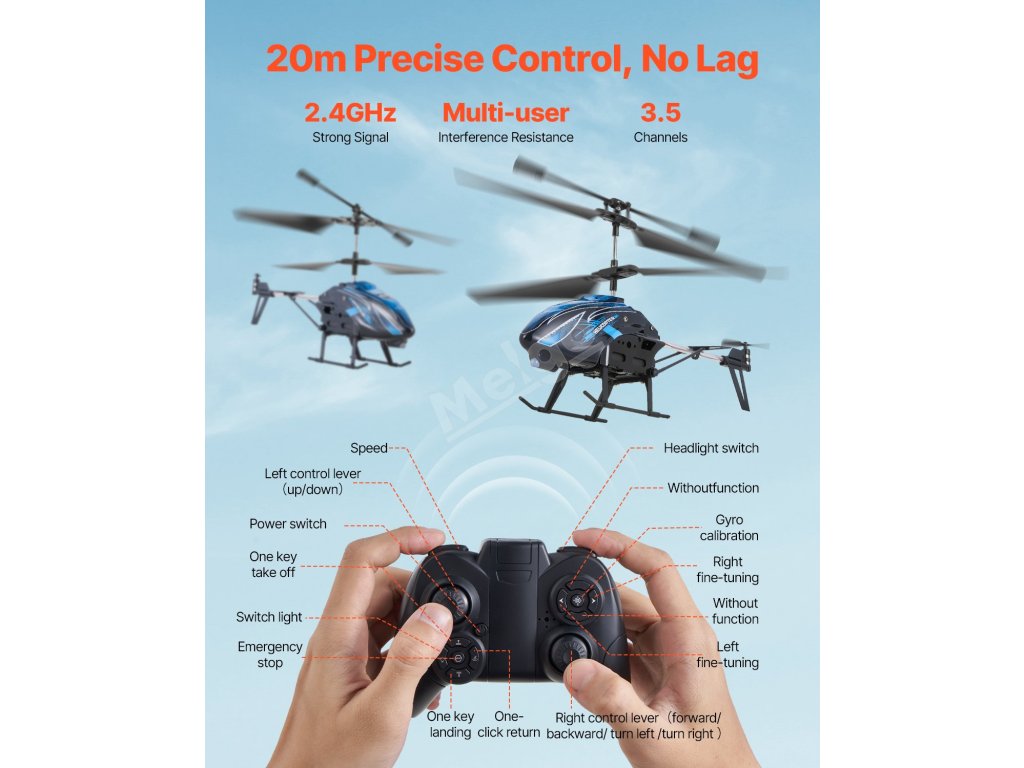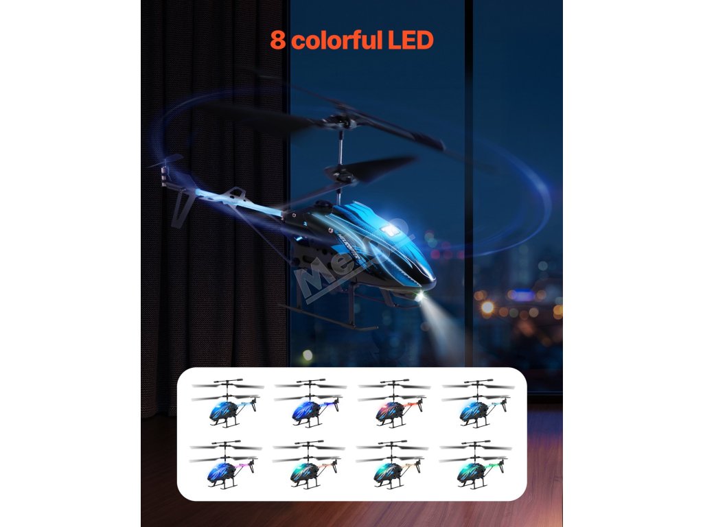 Tento RC vrtulník je vybaven funkcí vzletu/přistání jedním tlačítkem a pokročilým gyroskopickým systémem pro snadný a stabilní provoz. Je vyroben z odolných materiálů odolných proti nárazům a dodává se s dálkovým ovládáním 2,4 GHz pro přesné ovládání na velké vzdálenosti. Ideální pro děti od 8 let. Jasná světla dodávají další zábavu.