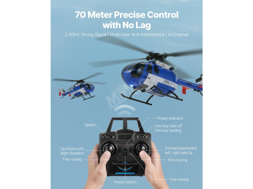 Dálkově ovládaný vrtulník 2.4GHz, 4 vrtule, 6-osý gyroskop, 4-kanály