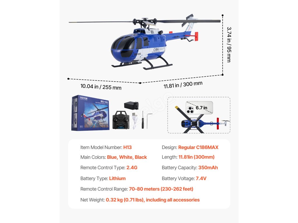 Tento vrtulník na dálkové ovládání je vyroben z vysoce kvalitních materiálů, je odolný proti nárazu a je určen pro hru uvnitř i venku, což dětem zaručuje dlouhotrvající zábavu.
