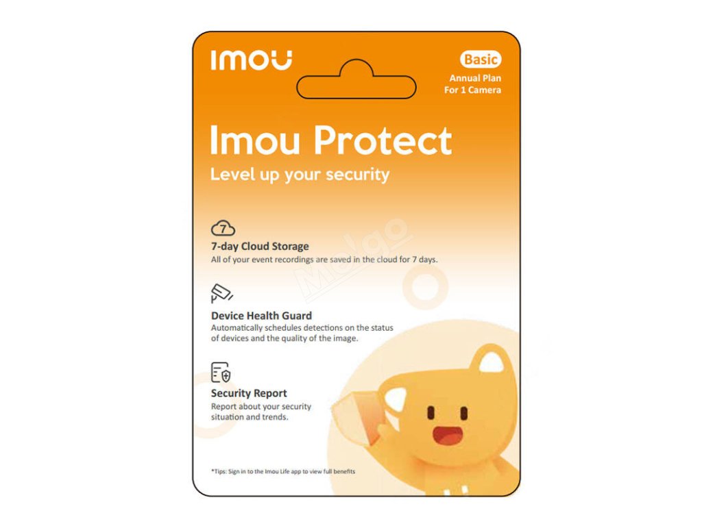 S touto kartou získáte roční předplatné podpory pro produkty IMOU. Díky ní získáte pokročilou technologii cloud computingu a také lepší zabezpečení. Vyberte si IMOU Protect a užívejte si ještě většího pohodlí. Poznámka: Předplatné je určeno pouze pro jednu kameru, neplatí pro DVĚ kamery.