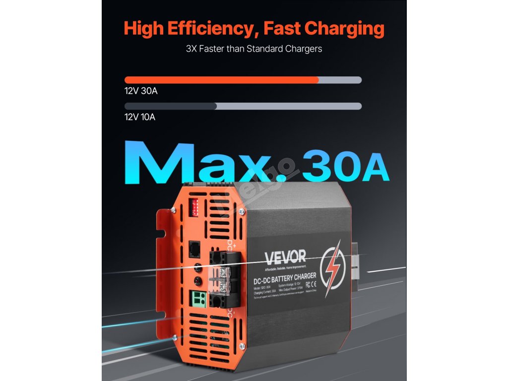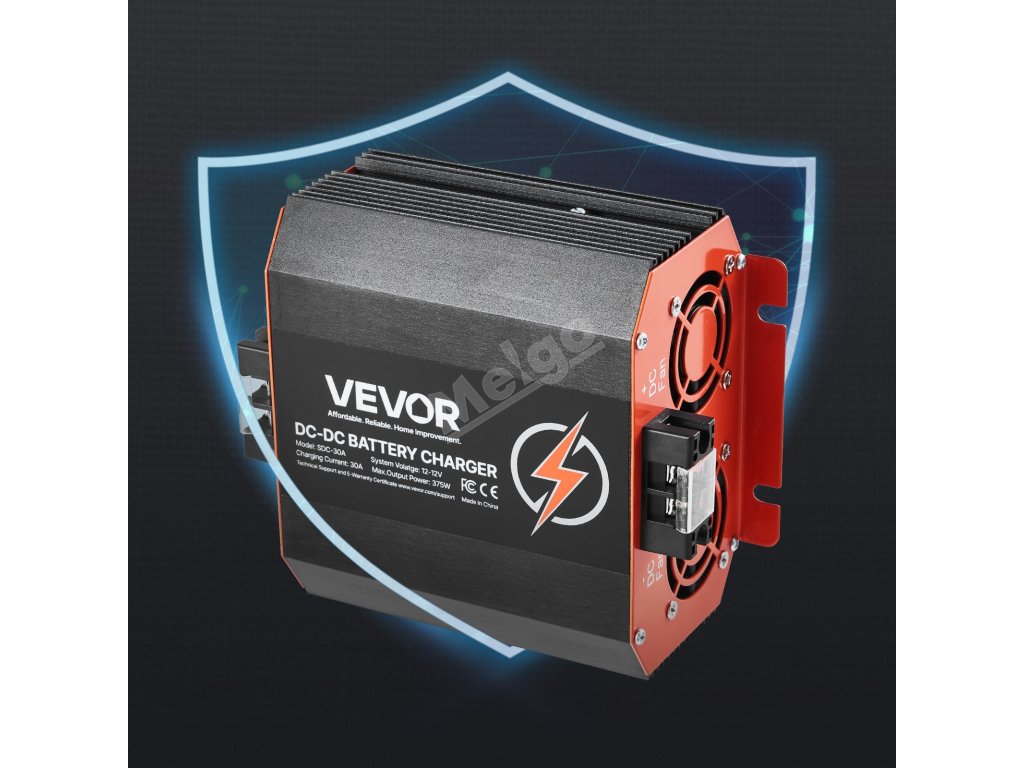 Dc-dc palubní nabíječka 12V 30A 375W, vícestupňová pro olovo a lithium