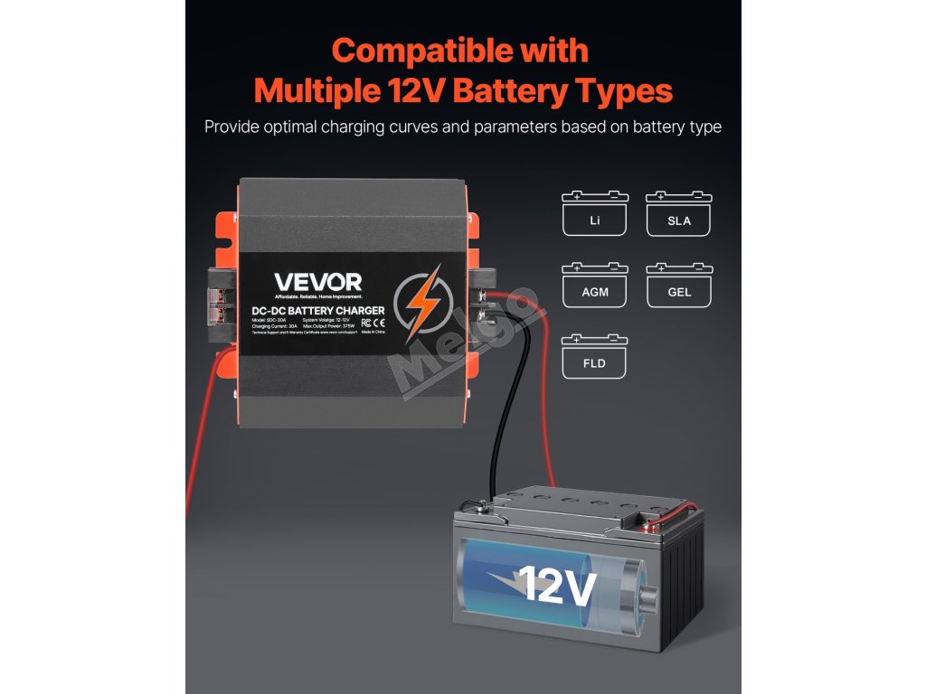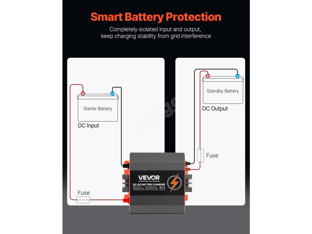 Tato stejnosměrná nabíječka využívá energii z generátoru k nabíjení pohotovostní baterie vašeho obytného vozu na cestách a zajišťuje tak nepřetržité napájení po celou dobu cesty.