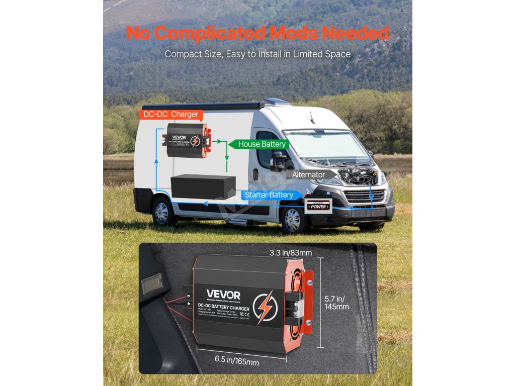 Táto nabíjačka na jednosmerný prúd využíva energiu z generátora na nabíjanie pohotovostnej batérie vášho obytného vozidla počas cesty, čím zabezpečuje nepretržité napájanie počas celej cesty.