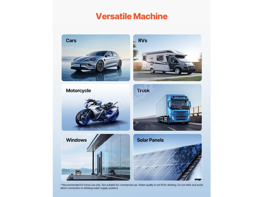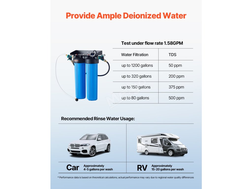 Tento systém s deionizovanou vodou je vhodný na domáce umývanie automobilov, zabraňuje vzniku škvŕn z tvrdej vody a zanecháva lesklý povrch bez šmúh. Je tiež skvelý na čistenie lodí, motocyklov, okien a solárnych panelov, pričom udržiava povrchy bez vodného kameňa.