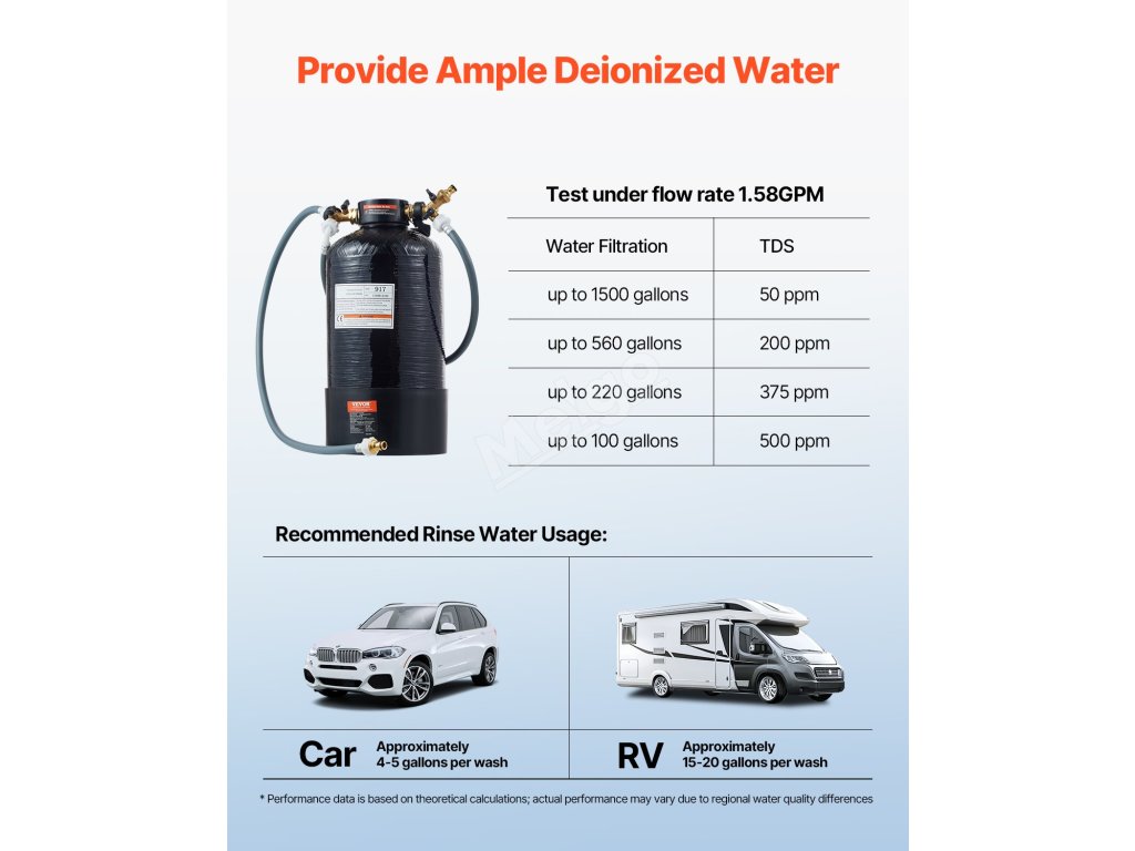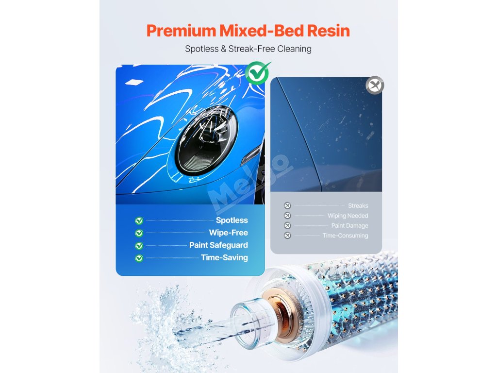 Tento systém s deionizovanou vodou je vhodný pro domácí mytí automobilů, zabraňuje vzniku skvrn od tvrdé vody a zanechává lesklý povrch beze šmouh. Je také skvělý pro čištění lodí, motocyklů, oken a solárních panelů a udržuje povrchy bez vodního kamene.