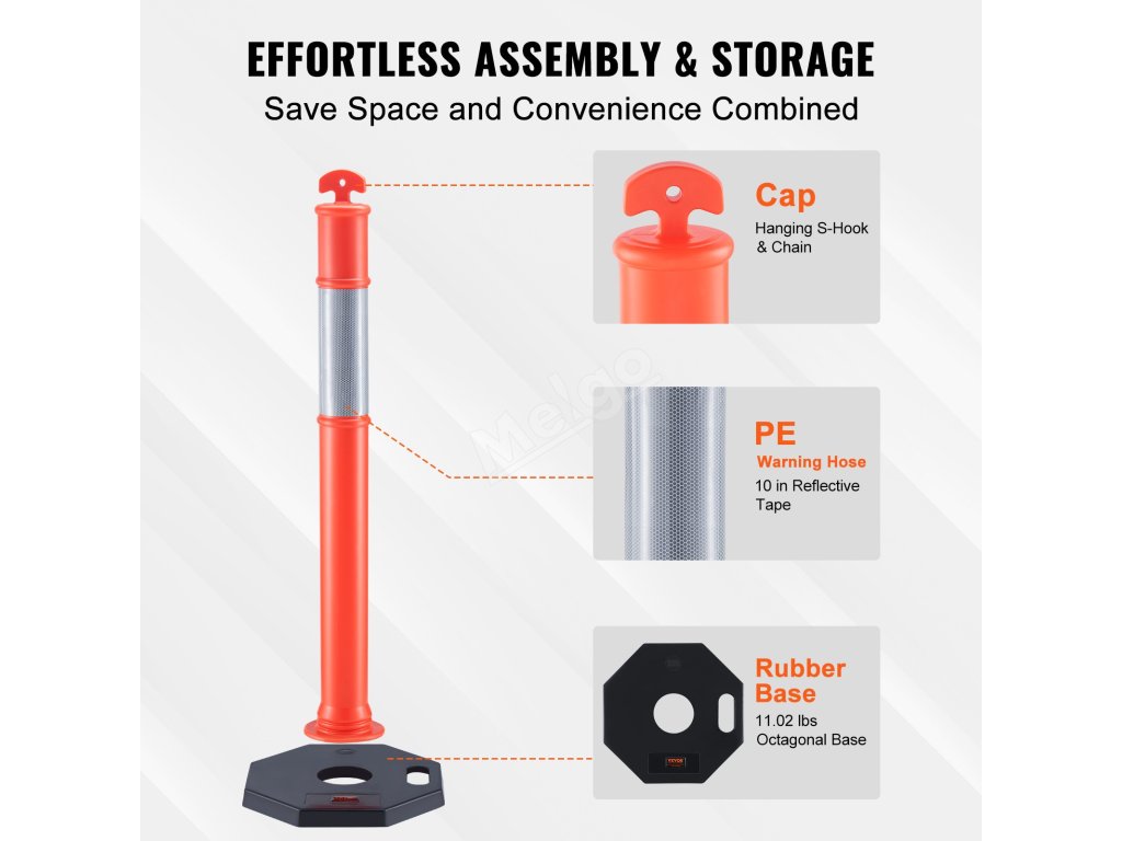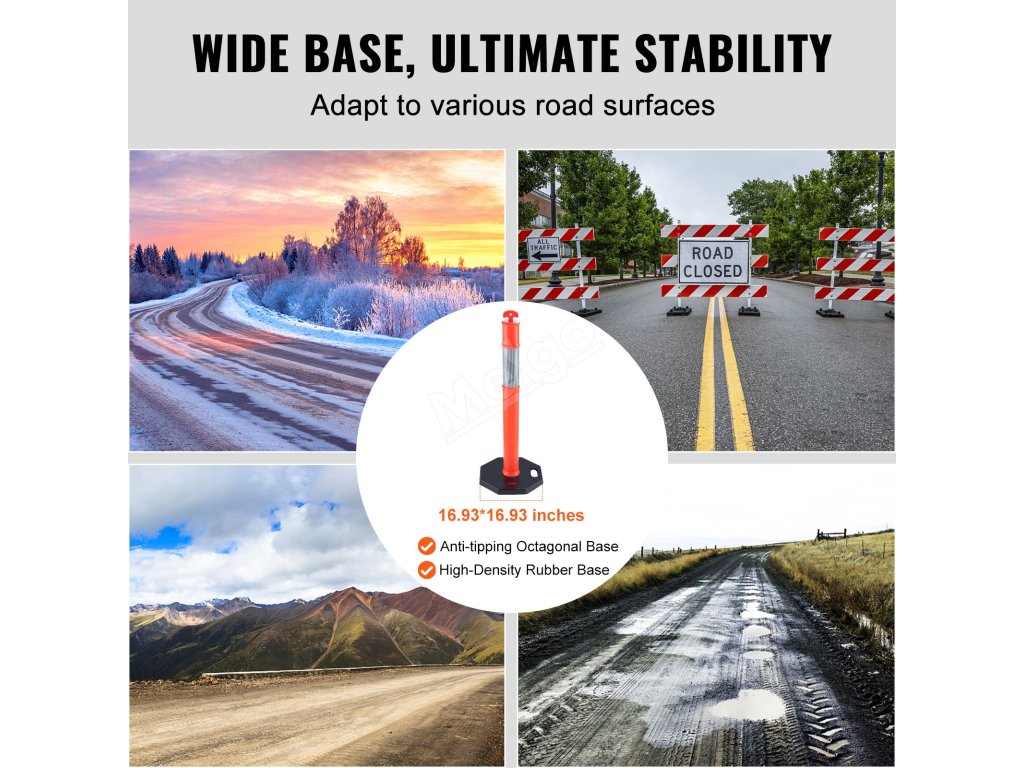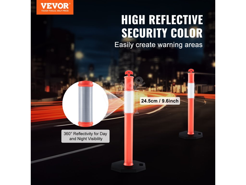 Naše sloupky pro vymezení provozu jsou opatřeny jasnou bezpečnostní barvou a 360° reflexními pruhy, které zajišťují lepší viditelnost v noci a vynikající bezpečnostní varování, ať už jde o stavební projekty nebo vytváření výstražných zón. Odnímatelná konstrukce usnadňuje skladování a přístup k nim.