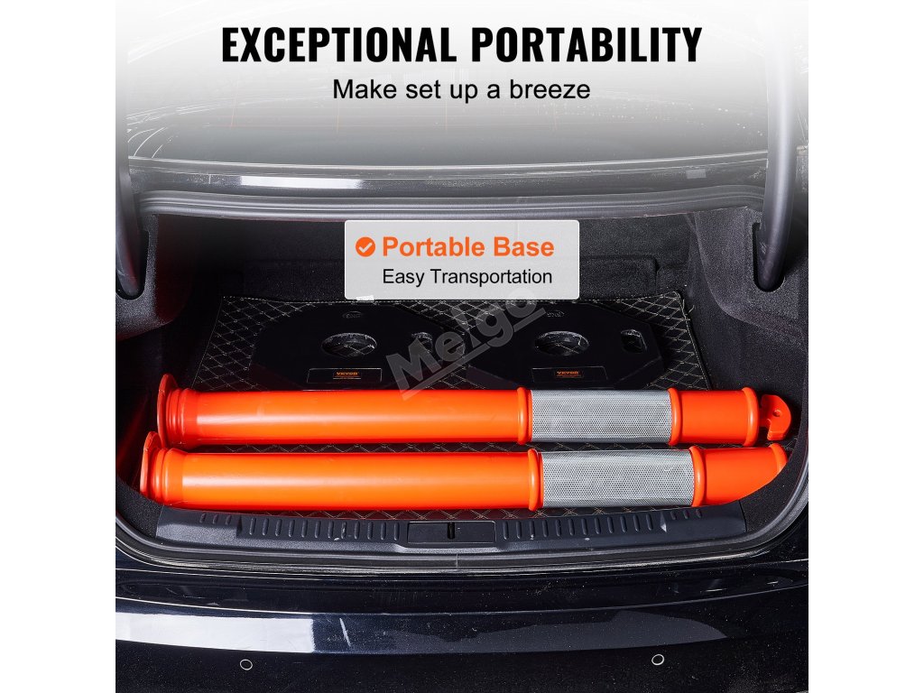 Přepravní bezpečnostní vymezovač a základna mají kompaktní, odnímatelnou konstrukci pro rychlou montáž a snadnou přepravu, což umožňuje jejich pohodlné nasazení a nastavení