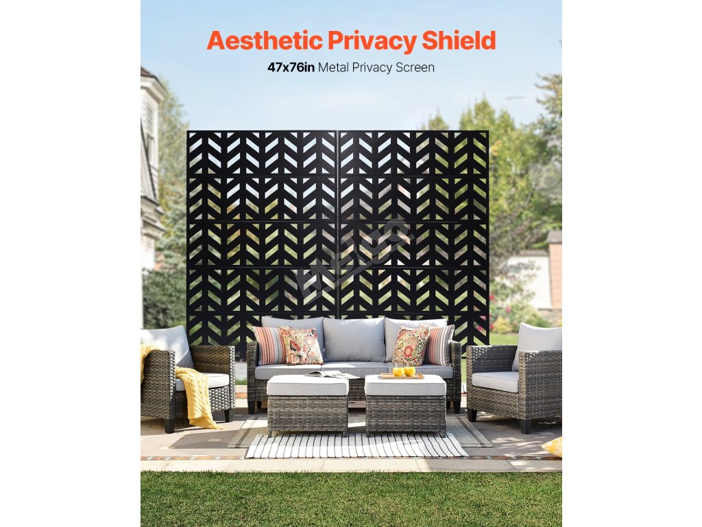 Tato kovová zástěna na ochranu soukromí o rozměrech 47 × 72 palců je odolná proti korozi a trvanlivá, ideální pro dlouhodobé venkovní použití. Díky odolnosti proti větru je ideální pro zahrady, terasy a dvory, kde nabízí soukromí i styl. Lze ji použít i v interiéru k rozdělení prostor, kde poskytuje všestranné a elegantní oddělení.
