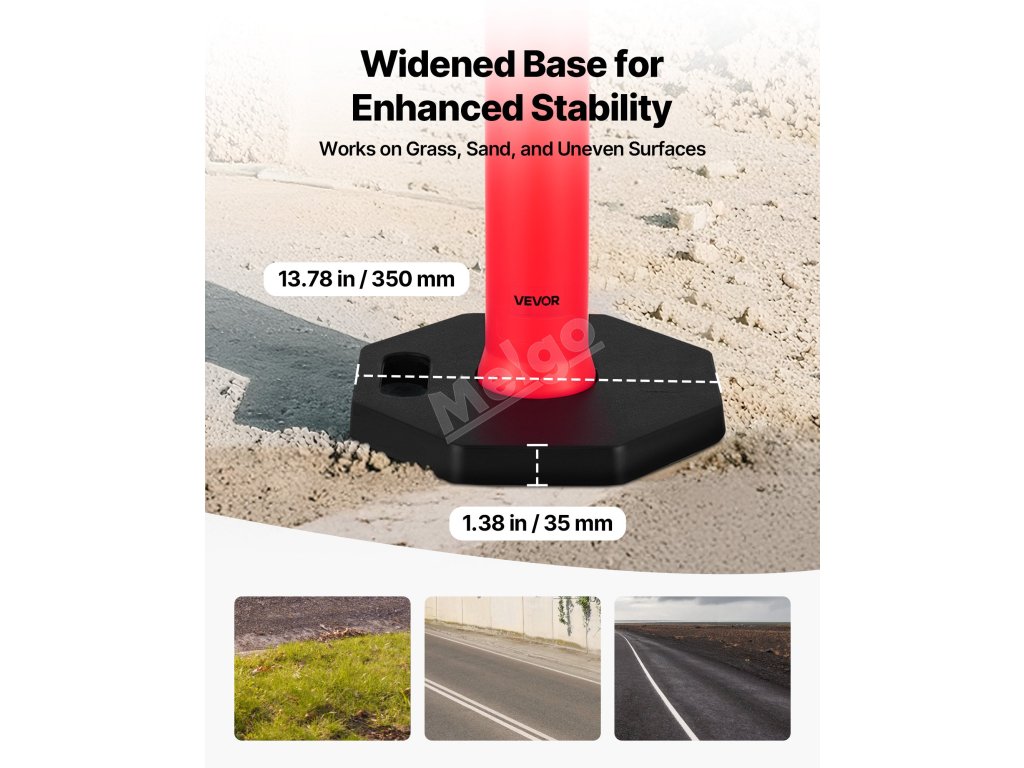 Značkové sloupky mají jasné barvy a 360° reflexní proužky, které zajišťují větší bezpečnost při nočních výstrahách na silnicích. Jeho odnímatelná konstrukce umožňuje snadné uložení v zásahových vozidlech nebo hromadnou přepravu, takže je v případě potřeby snadno dostupný.