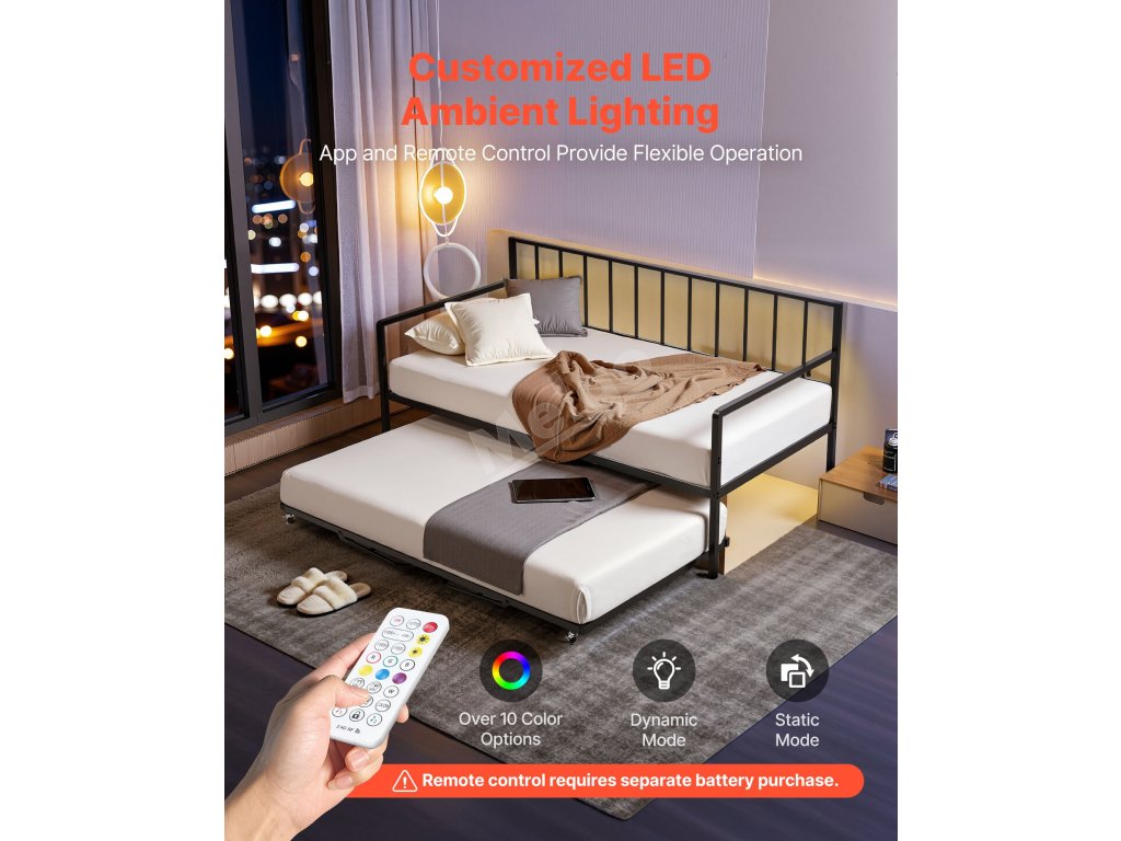 Denní postel s přistýlkou, nastavitelná výška, led, nabíjecí stanice