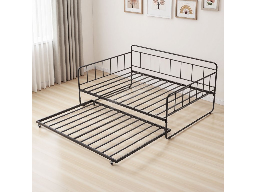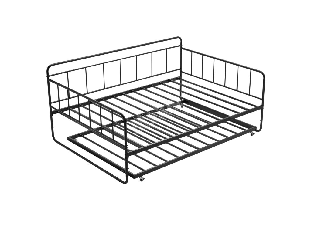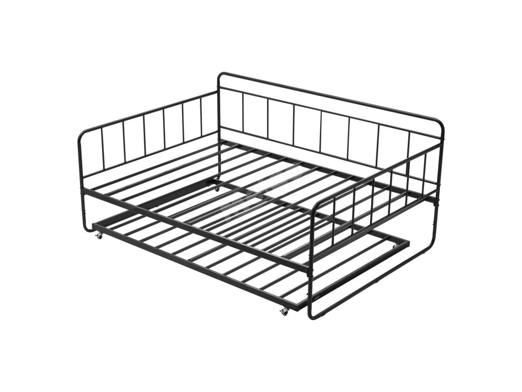 Denní postel v plné velikosti s výsuvným lůžkem, kovový rám, lamely