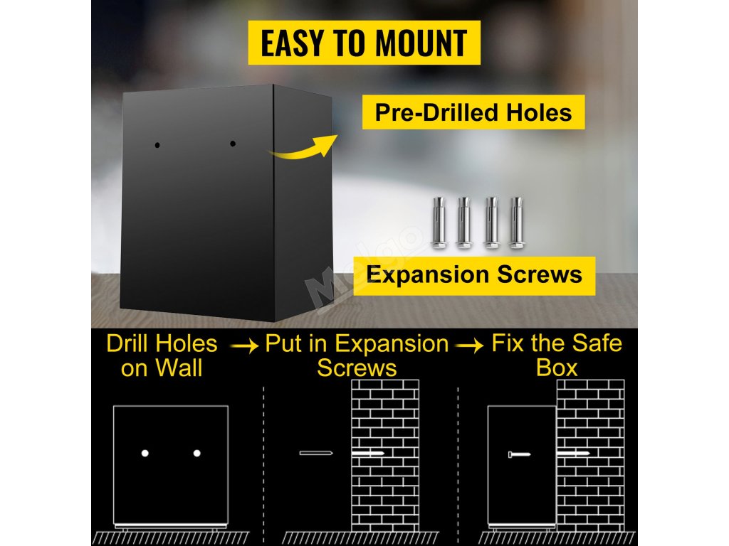 Instalace je jednoduchá, instalační otvor je předvrtán na zadní straně a součástí balení jsou rozšiřující šrouby, takže instalace osobního trezoru je hračka.