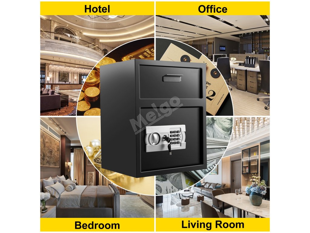 Domácí trezor na peníze se hojně používá k ukládání zbraní, důležitých dokumentů, šperků, hotovosti a dalších cenností. Je ideální pro domácnost, hotel, kancelář, obchod, restauraci atd.