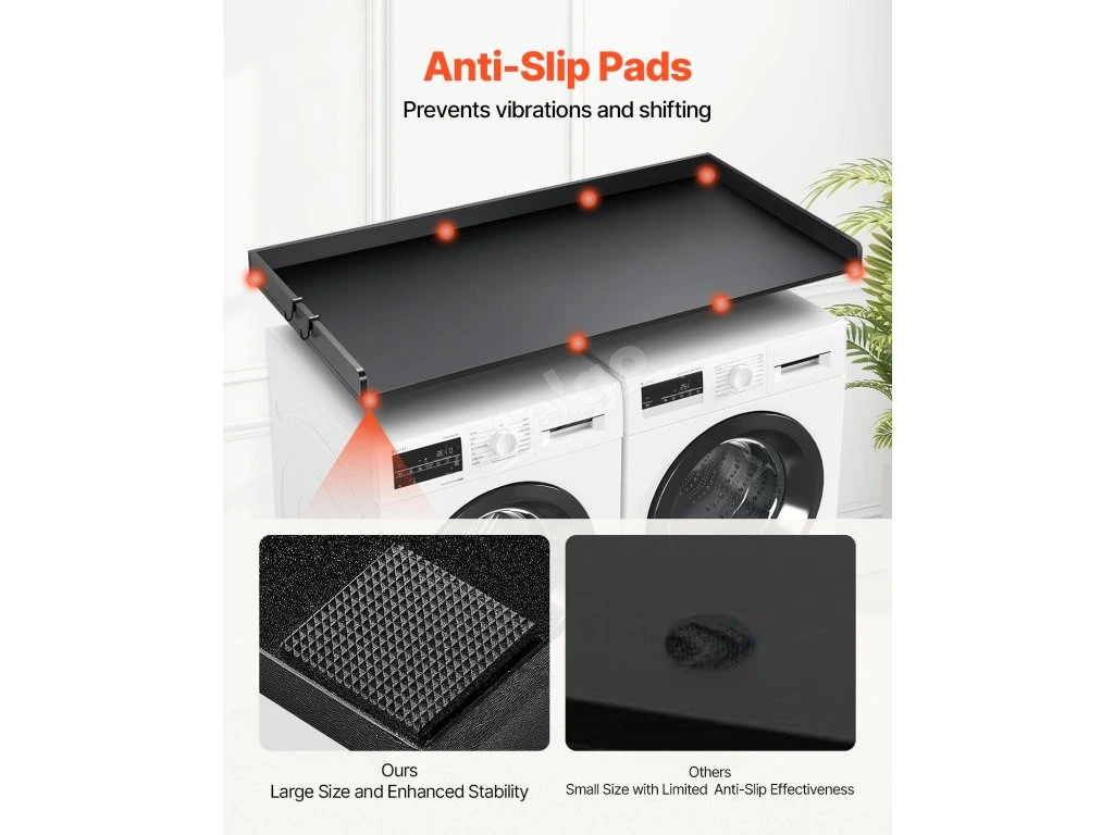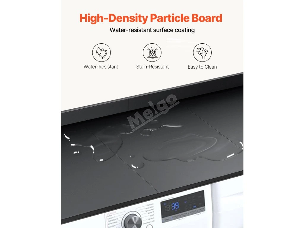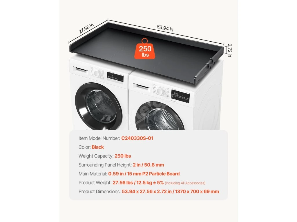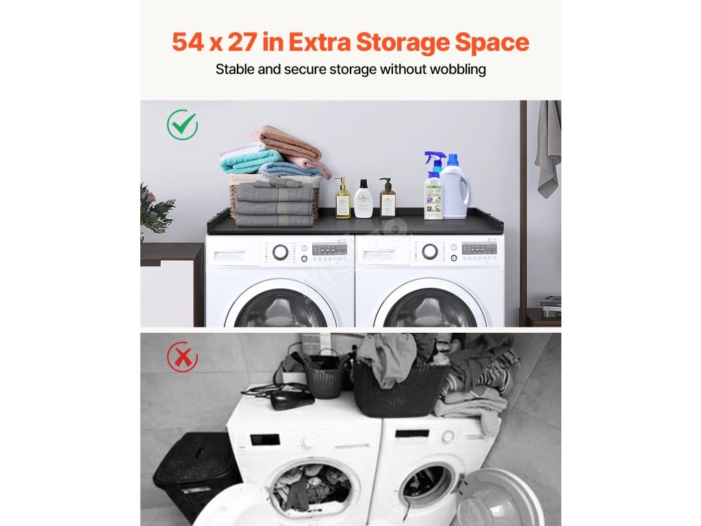 Tato deska pro pračku a sušičku je 54 palců široká a 27 palců hluboká, takže poskytuje prostornou pracovní plochu pro vaši prádelnu. Ať už skládáte oblečení, třídíte věci nebo ukládáte prací potřeby, tato velká plocha splní všechny vaše potřeby.