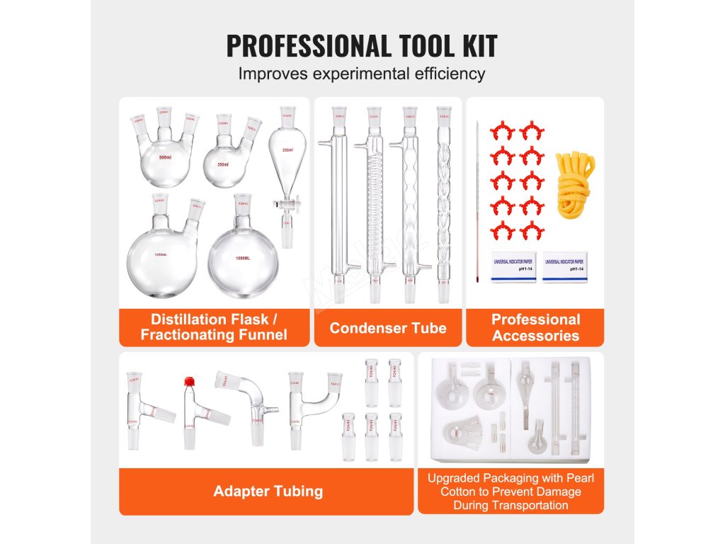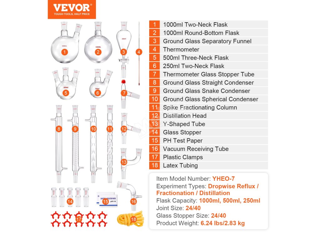 Zvyšte úroveň extrakce esenciálních olejů pomocí destilačního přístroje VEVOR. Je vyroben z odolného borosilikátového skla 3.3 a zaručuje dlouhou životnost a spolehlivost. Vyznačuje se také vysokou teplotní a korozní odolností, což zaručuje efektivní experimenty a jisté výsledky!