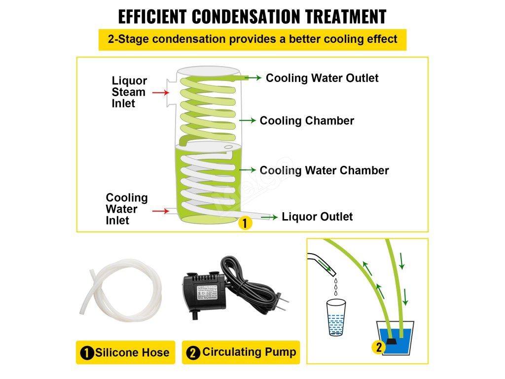 Vnější kondenzace a kondenzace v trubici mohou probíhat současně a zajišťují lepší chladicí účinek, zatímco vestavěná trubice cívky má větší kontaktní plochu s vodní chladicí kapalinou.