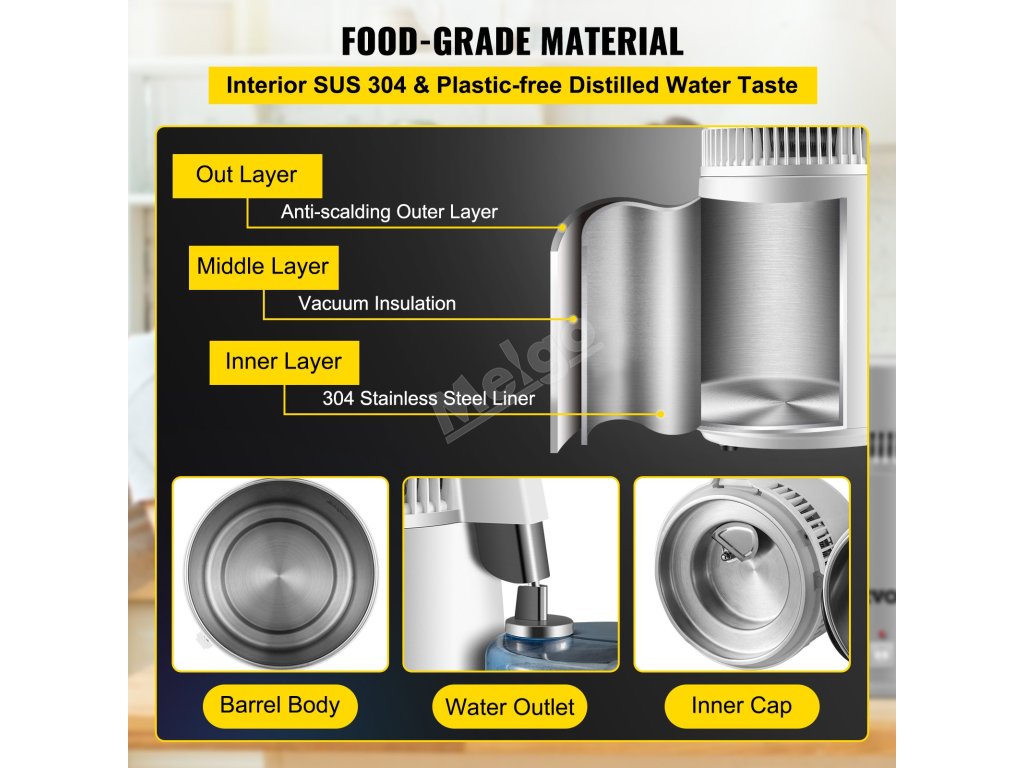 Destilátor vody 4L 750W s nerezovým vnitřkem a nádobou pro domácnosti