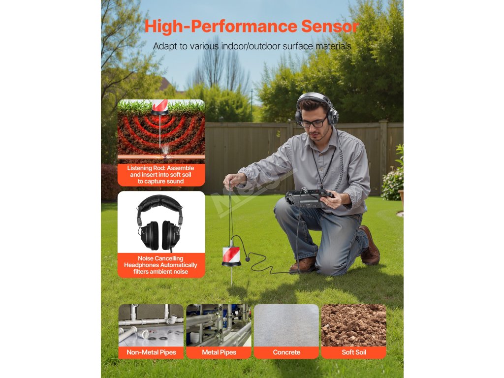 Detektor úniku vody v potrubí 1Hz-5000Hz dotykový lcd do 2m, 3 tyče